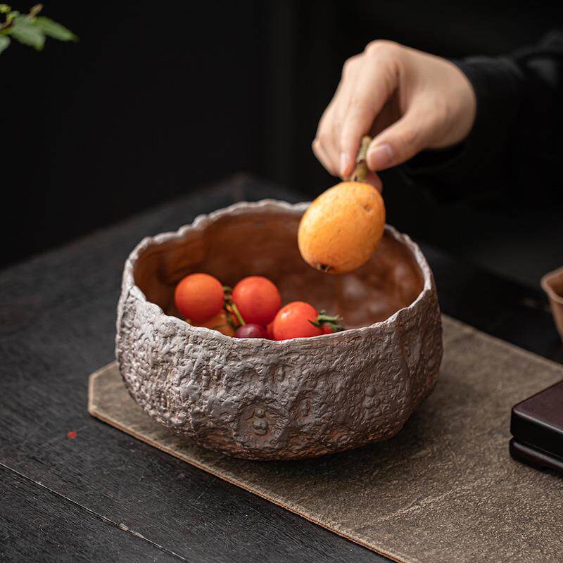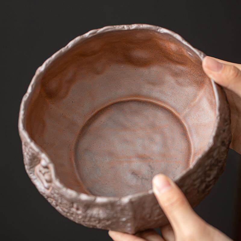 粗陶老岩泥敦煌茶洗手作复古粗陶茶盂水盂笔洗茶渣缸建水茶道零配