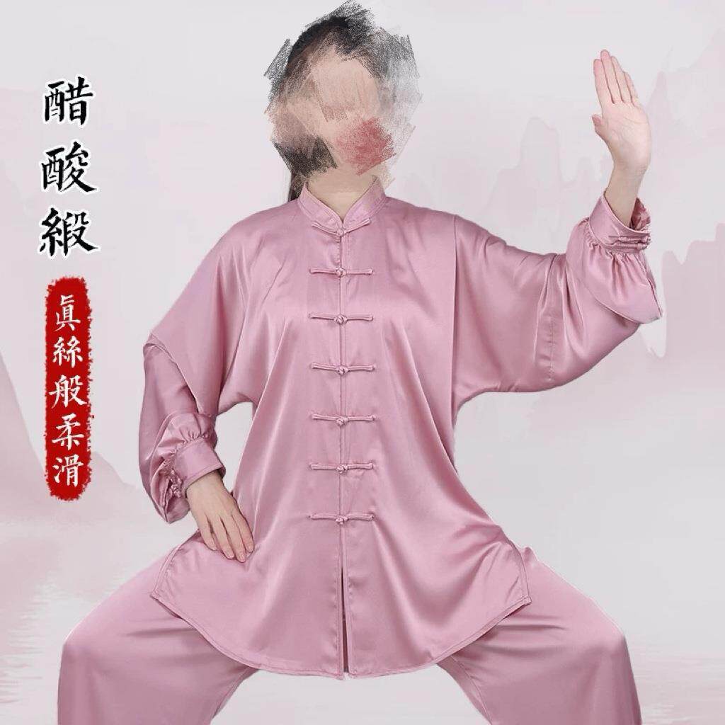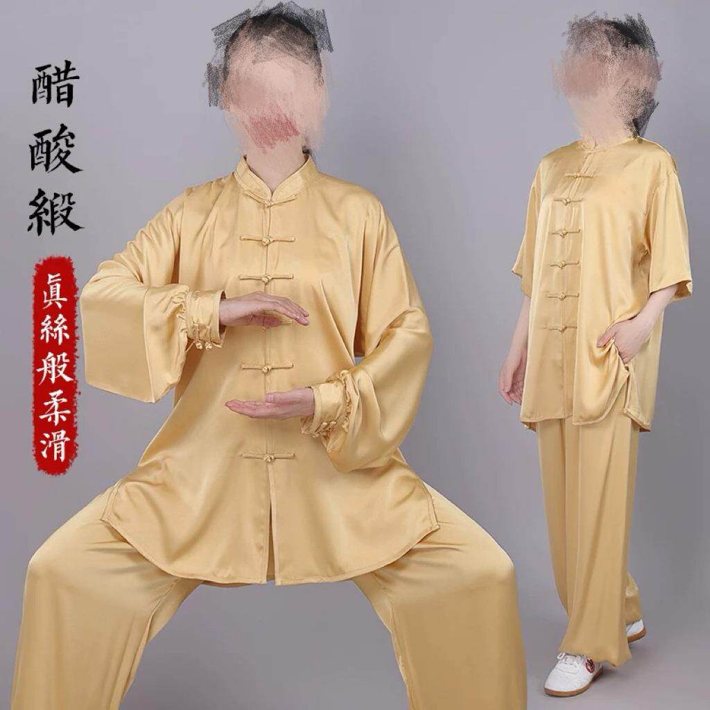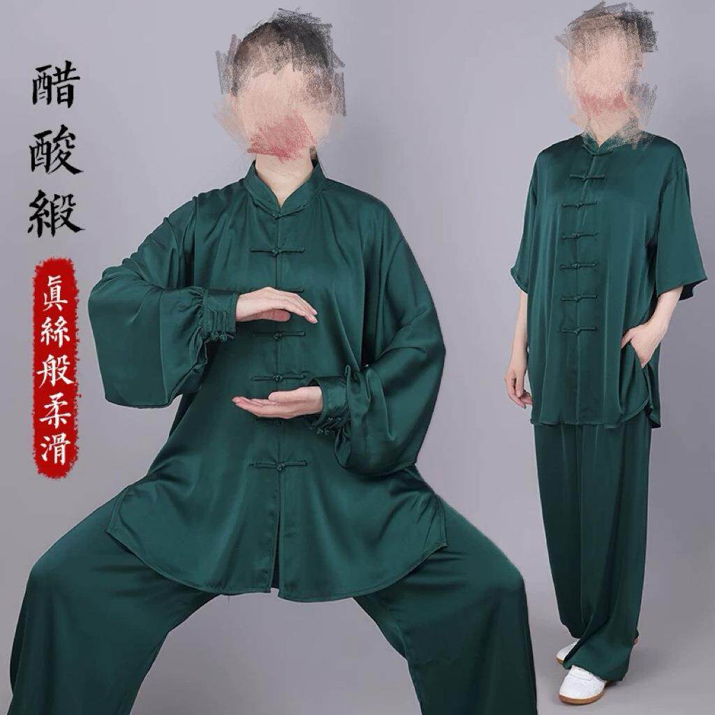 新款醋酸缎八段锦太极拳服女比赛表演练功服男春夏季凉爽高端太极