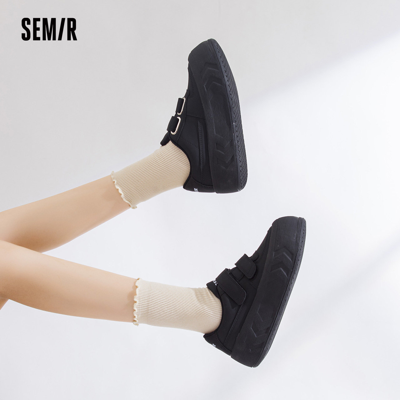 Semir帆布鞋女款2025春秋季新款鞋子女休闲加绒厚底面包鞋布鞋女