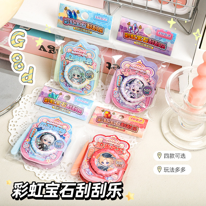 彩虹宝石刮刮乐豆豆本换装贴纸书儿童趣味闯关刮刮画挖宝石玩具课间游戏互动女孩百变衣橱美丽服装贴纸安静书