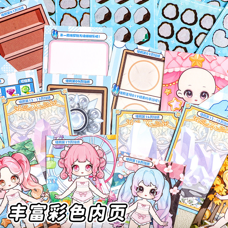 萌崽新款学霸学渣果冻贴纸安静书儿童免裁剪手工粘贴DIY女孩趣味玩具
