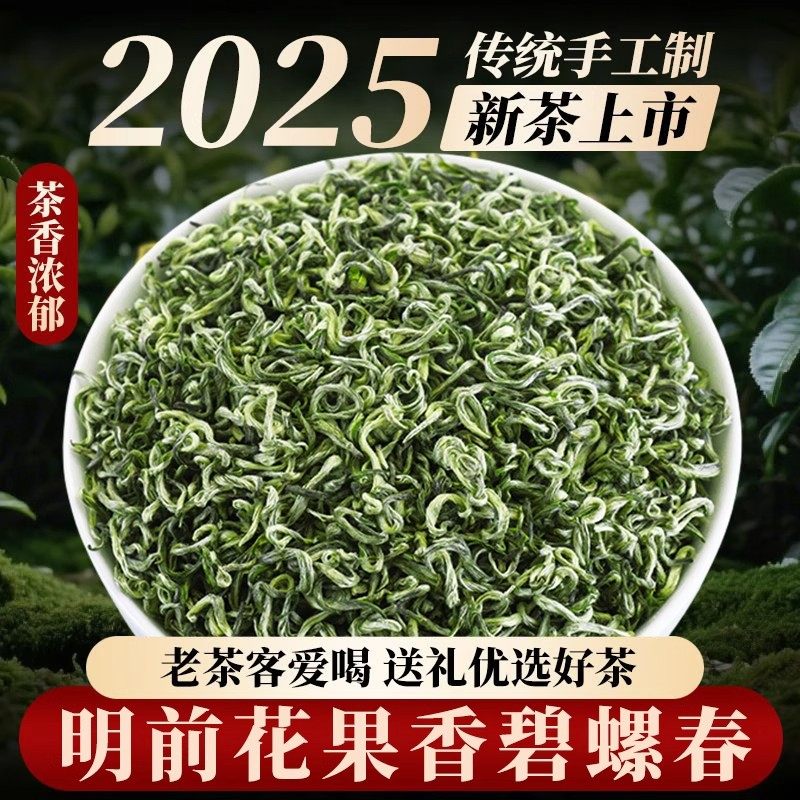 碧螺春茶叶绿茶高山云雾绿茶2025新茶明前嫩芽碧螺春自饮袋装500g