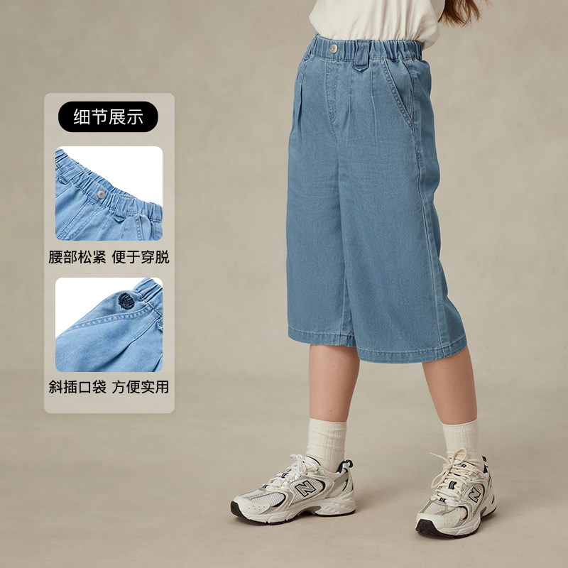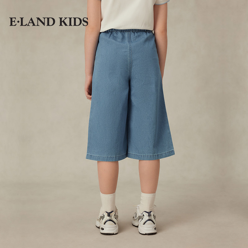 【凉感科技】eland kids衣恋童装女童七分裤25年夏新品宽松牛仔裤