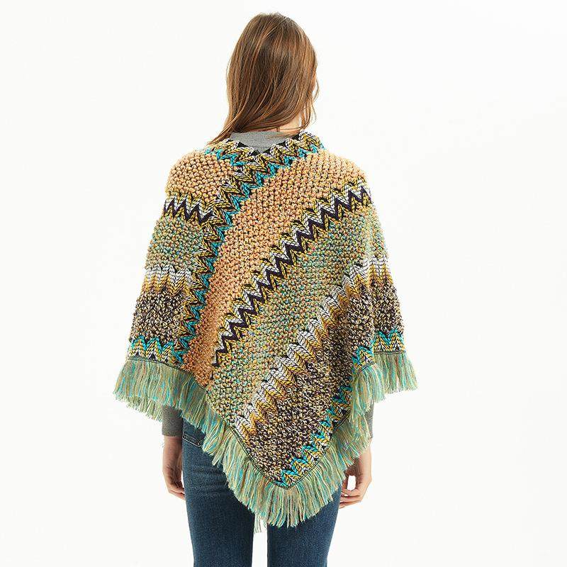 云南丽江民族风蓝色旅游披肩女外搭氛围感时尚披风斗篷针织围巾女