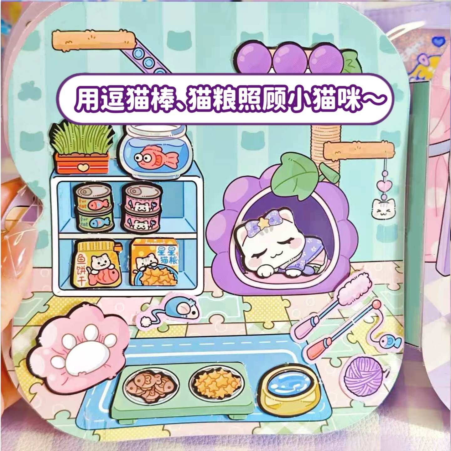 萌崽2025新款光栅卡葡萄果冻吸吸乐安静书免裁剪手工diy儿童玩具