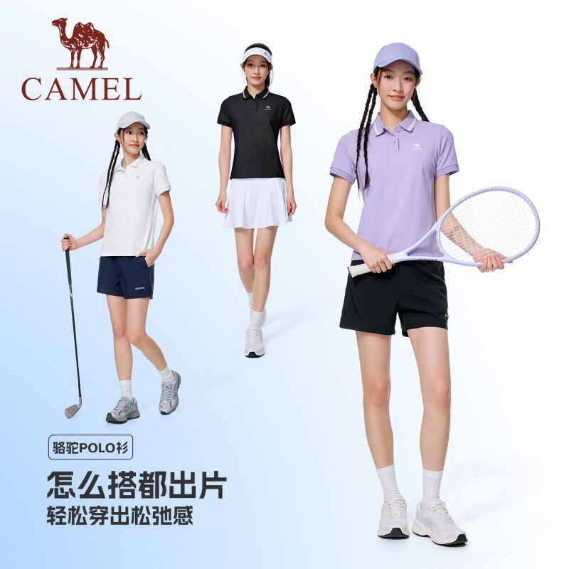 骆驼女装polo衫短袖夏季2025款吸湿速干透气翻领纯色polo领t恤女