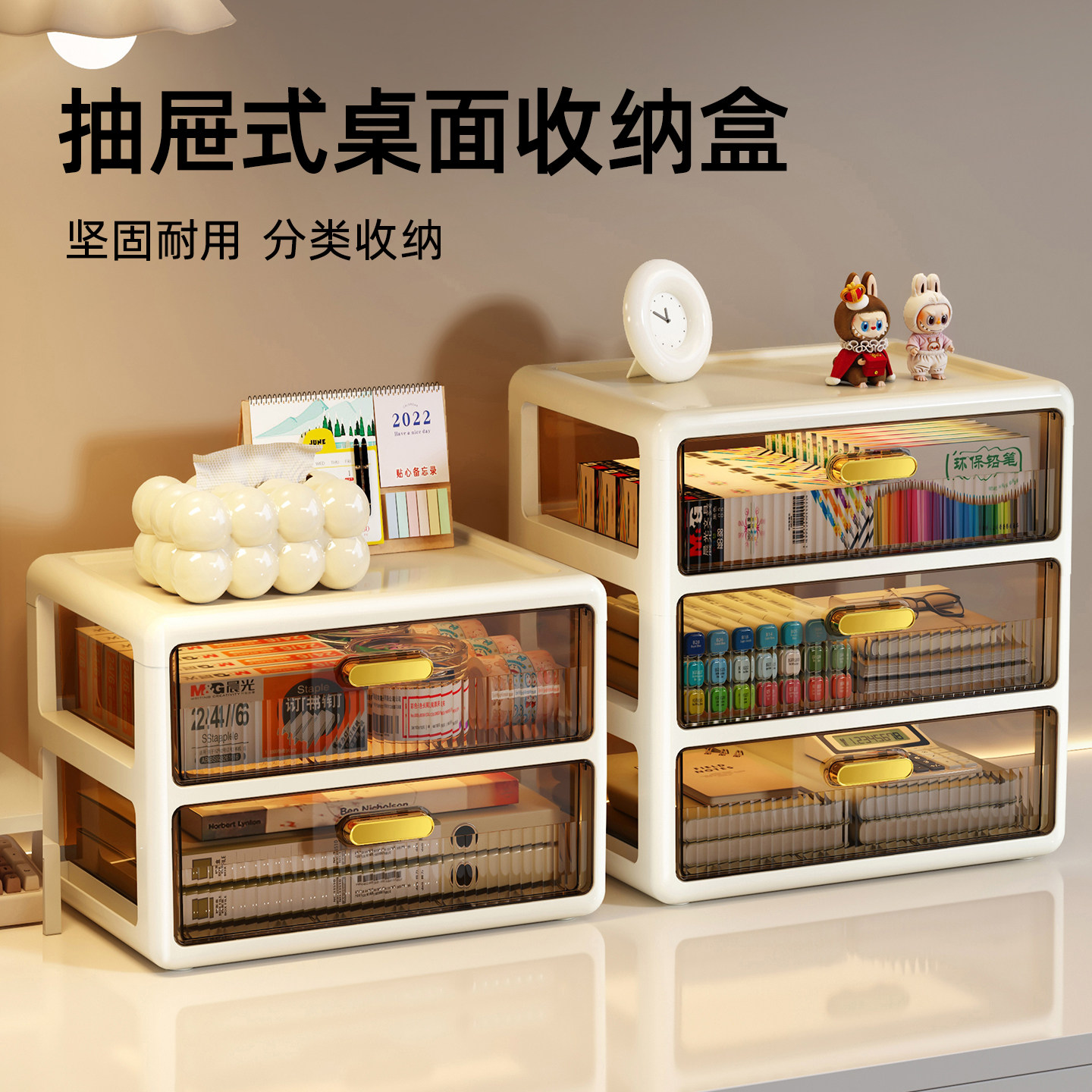 抽屉式桌面收纳盒办公室桌上文具化妆品置物架多层整理储物盒柜子