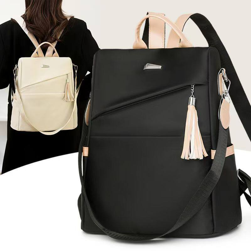 2026新款牛津布双肩包大容量休闲背包女士简约通勤撞色防盗女包包