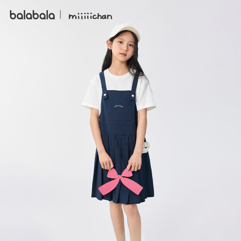 巴拉巴拉童装儿童连衣裙女童裙子2025夏装新款假两件学院风背带裙