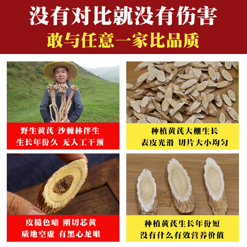 纯野生黄芪切片500g特级甘肃无硫正宗干货泡水补黄北芪中药材正品