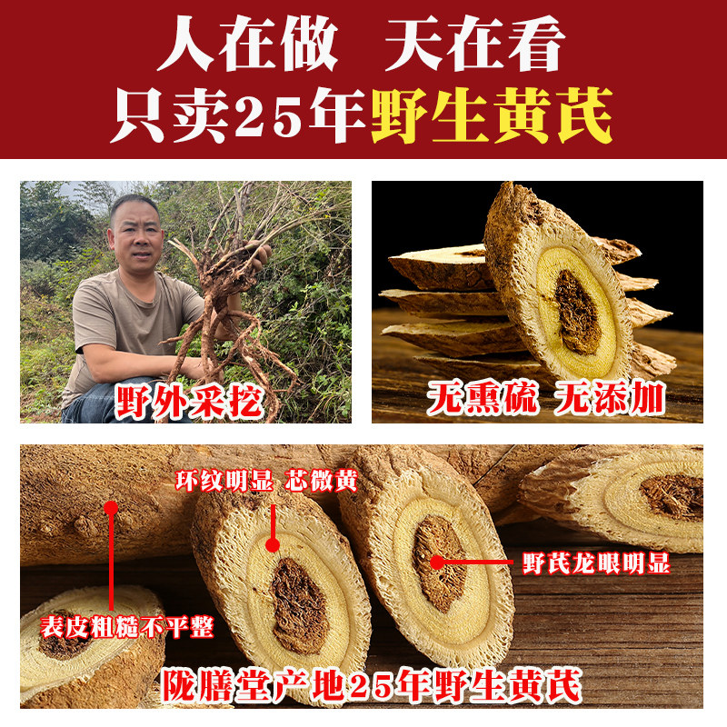久久春甘肃黄芪200g陇西特级主根黄芪大片野生泡茶泡水煲汤养生茶