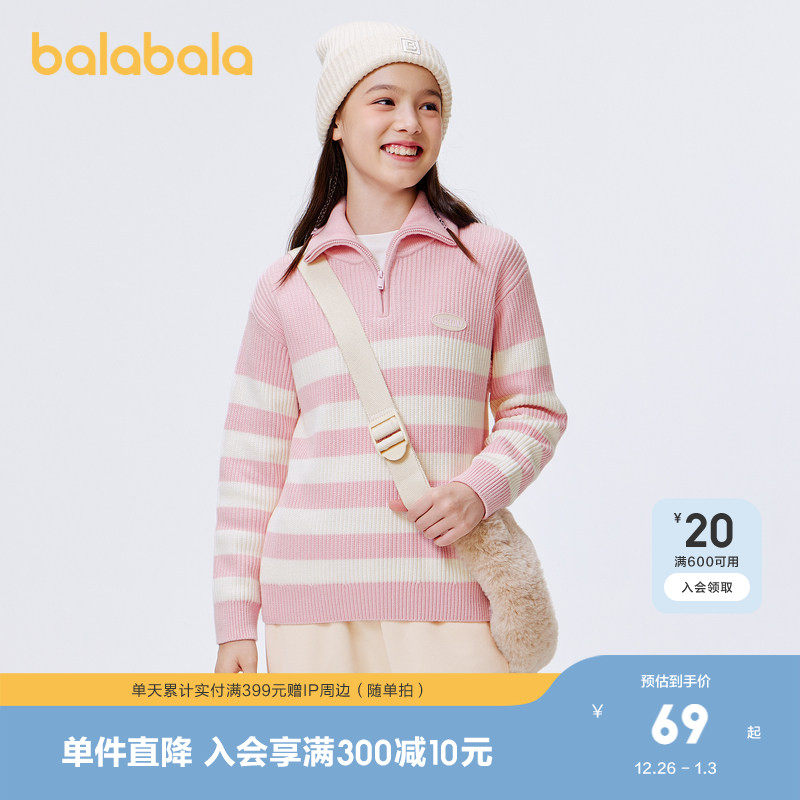 巴拉巴拉儿童毛衣套头秋冬大童男女童针织毛衫高领亲子装休闲上衣