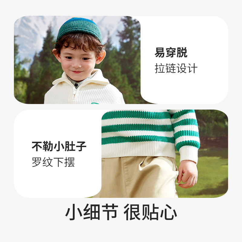 [李佳琦推荐][抗静电起球]齐齐熊男童毛衣加厚冬款条纹半高领宝宝