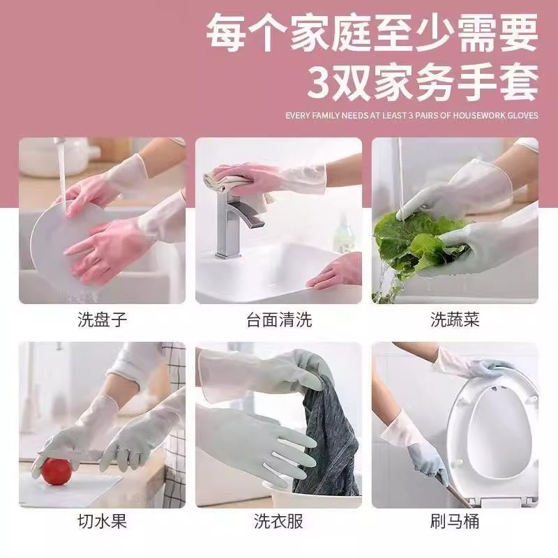 洗碗手套女家用厨房耐用型贴手防水胶皮手套刷碗做家务清洁洗衣服