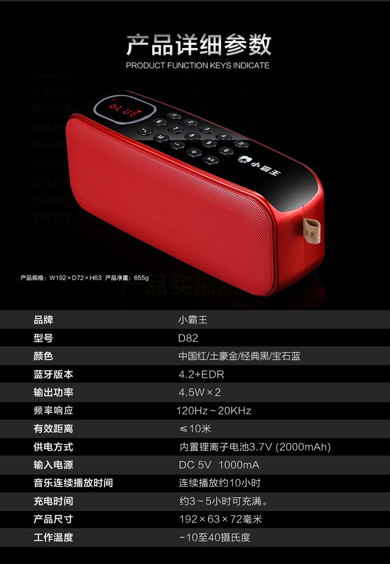 Subor/小霸王D82蓝牙音箱插卡U盘FM晨练广场舞大功率重低音播放器
