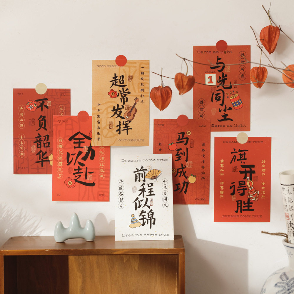 鱼跃龙门明信片国潮复古风高考毕业季文创礼物留言卡励志祝福卡片