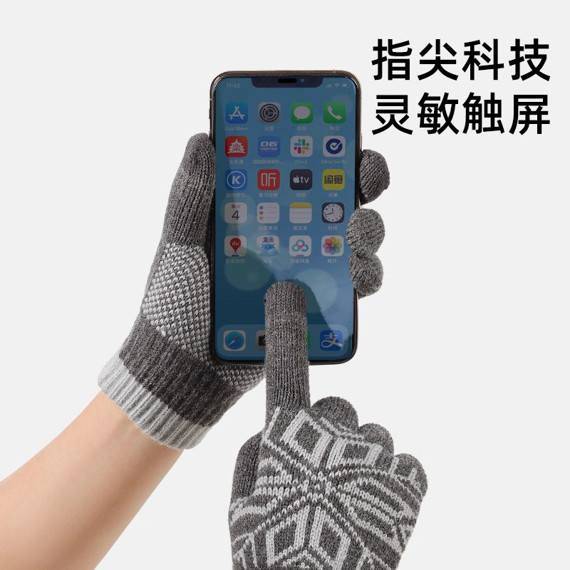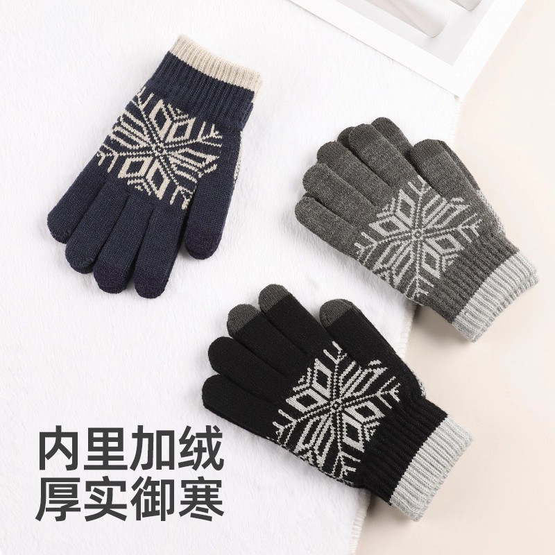 手套男冬季加绒保暖羊毛户外防风可触屏骑行电动车加厚防寒女针织