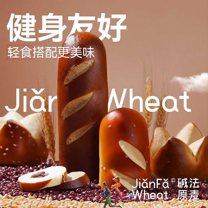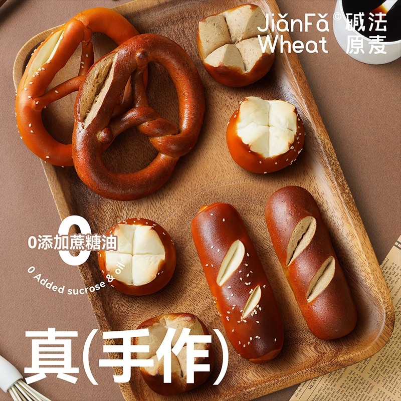 (大餐救星)碱法原麦全麦碱水面包无蔗糖无油咸味健康低脂饱腹