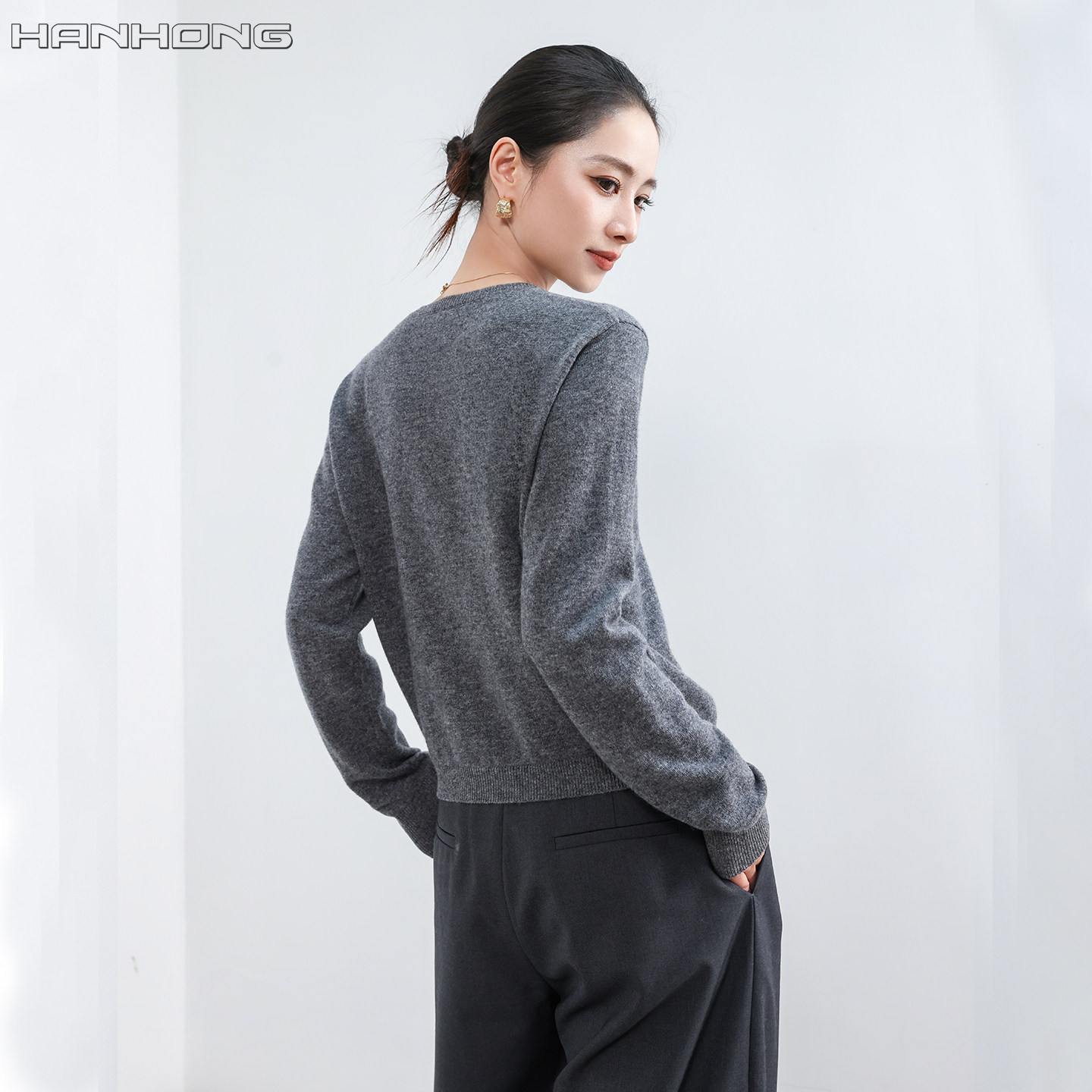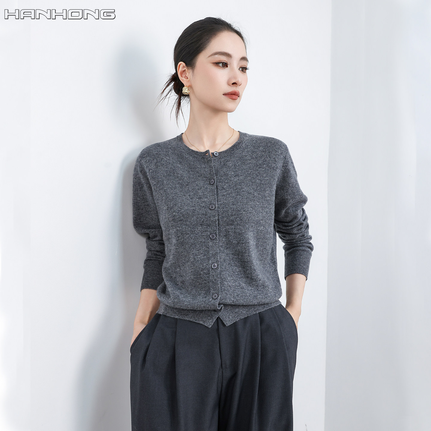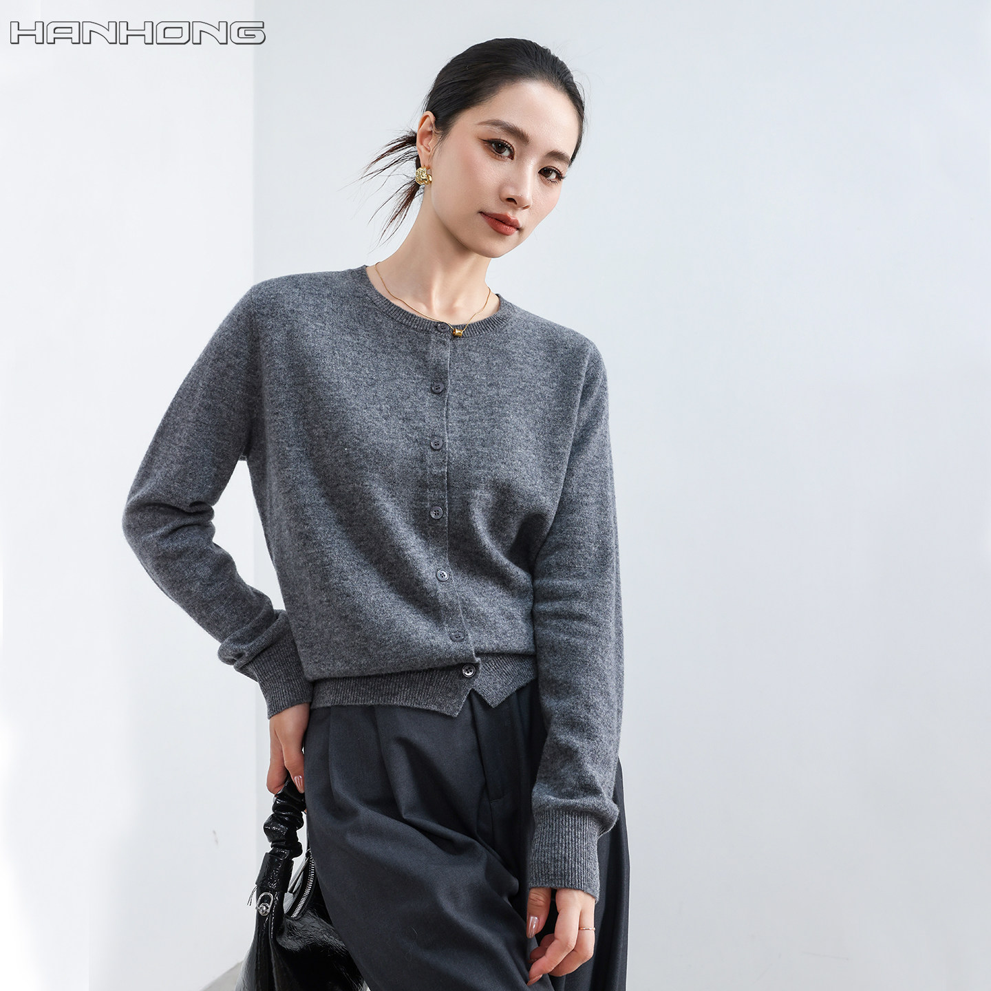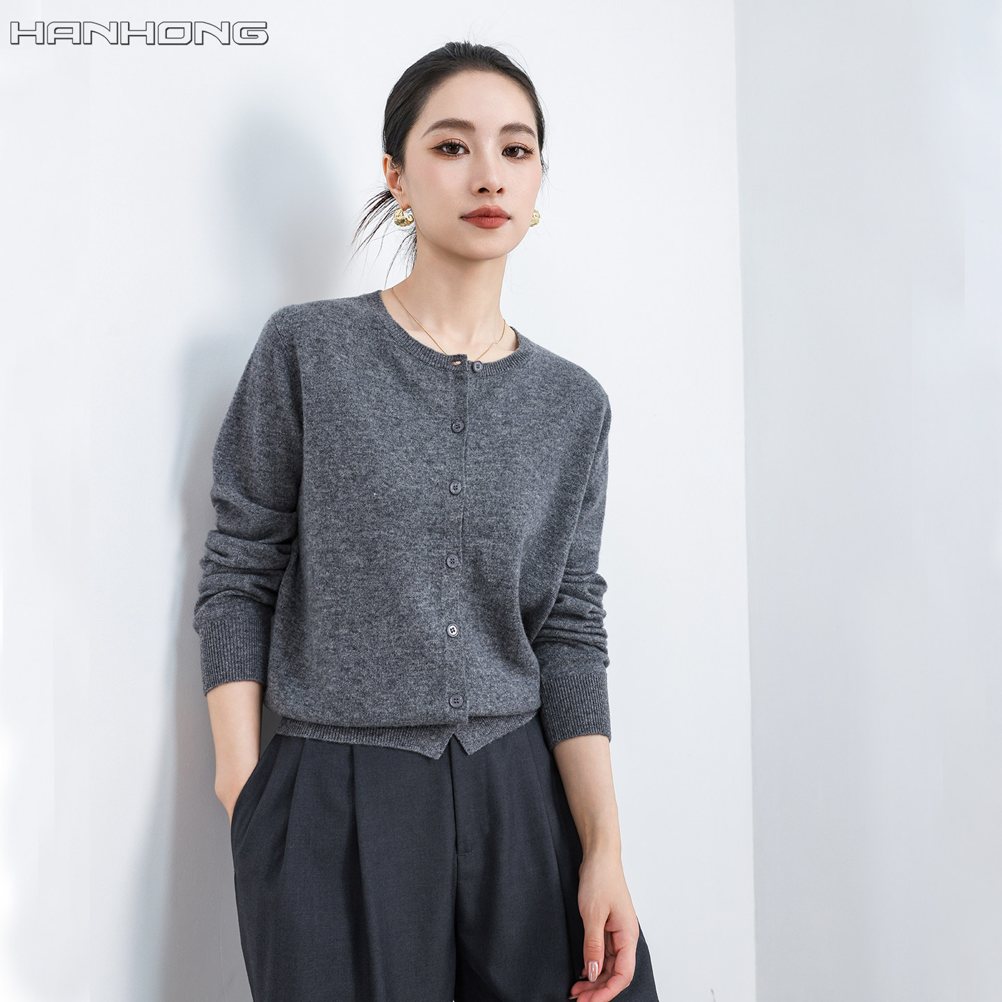 羊毛衫针织开衫女秋冬新款100%纯绵羊毛简约通勤上衣修身外套