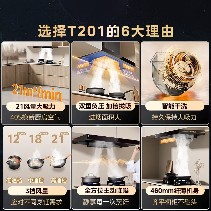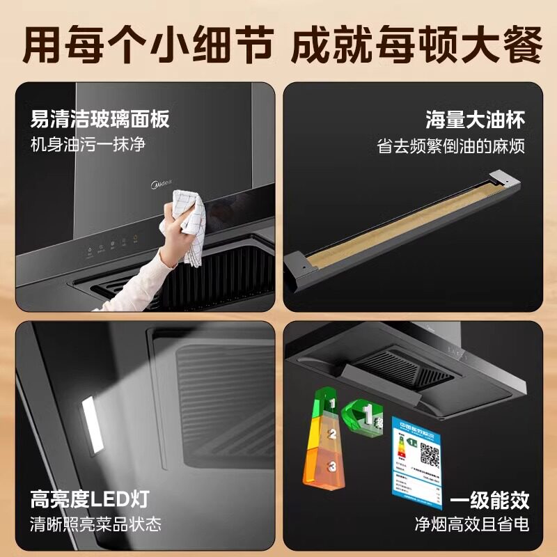 美的抽油烟机一级能效家用自动清洗欧式21m³大吸力顶吸挥手控制