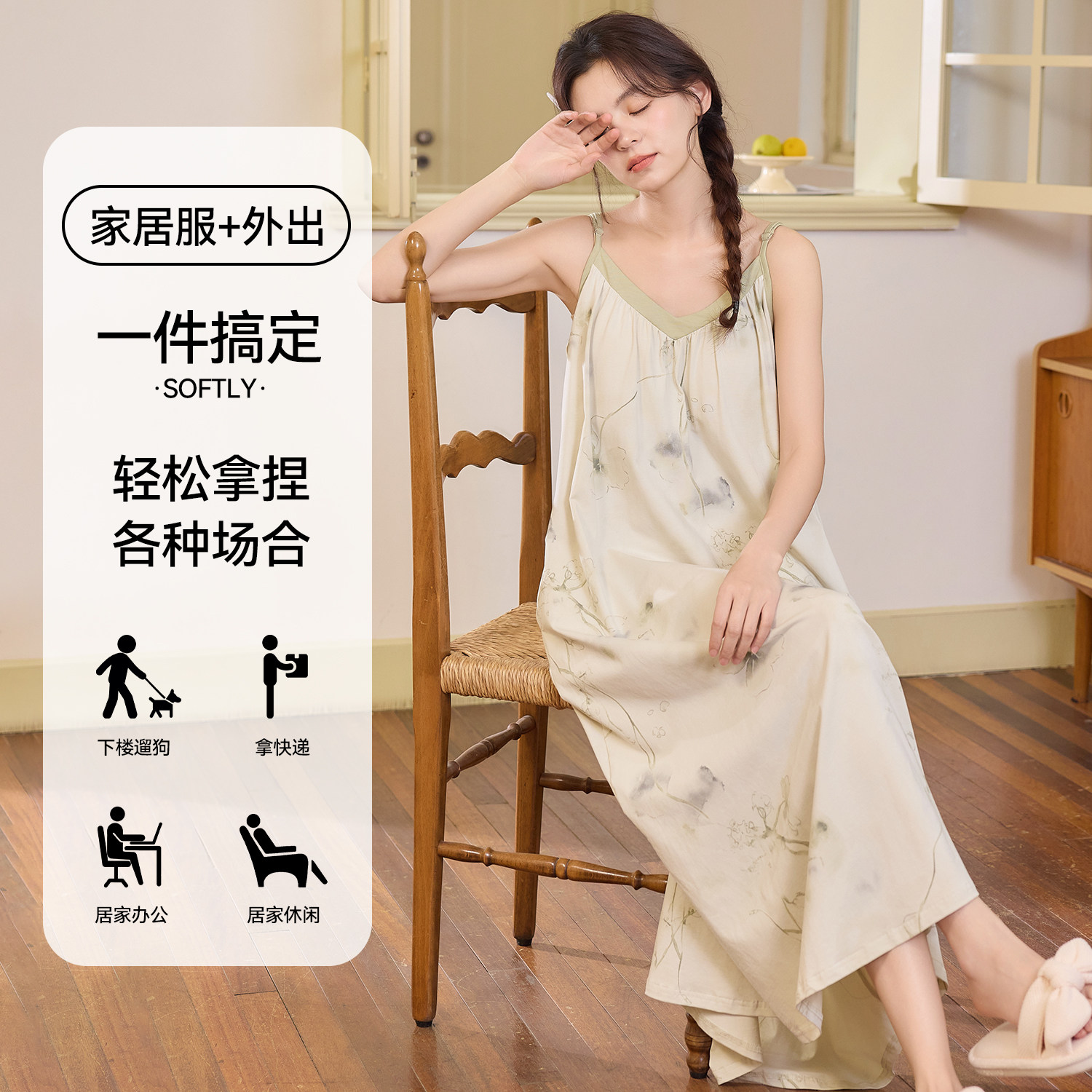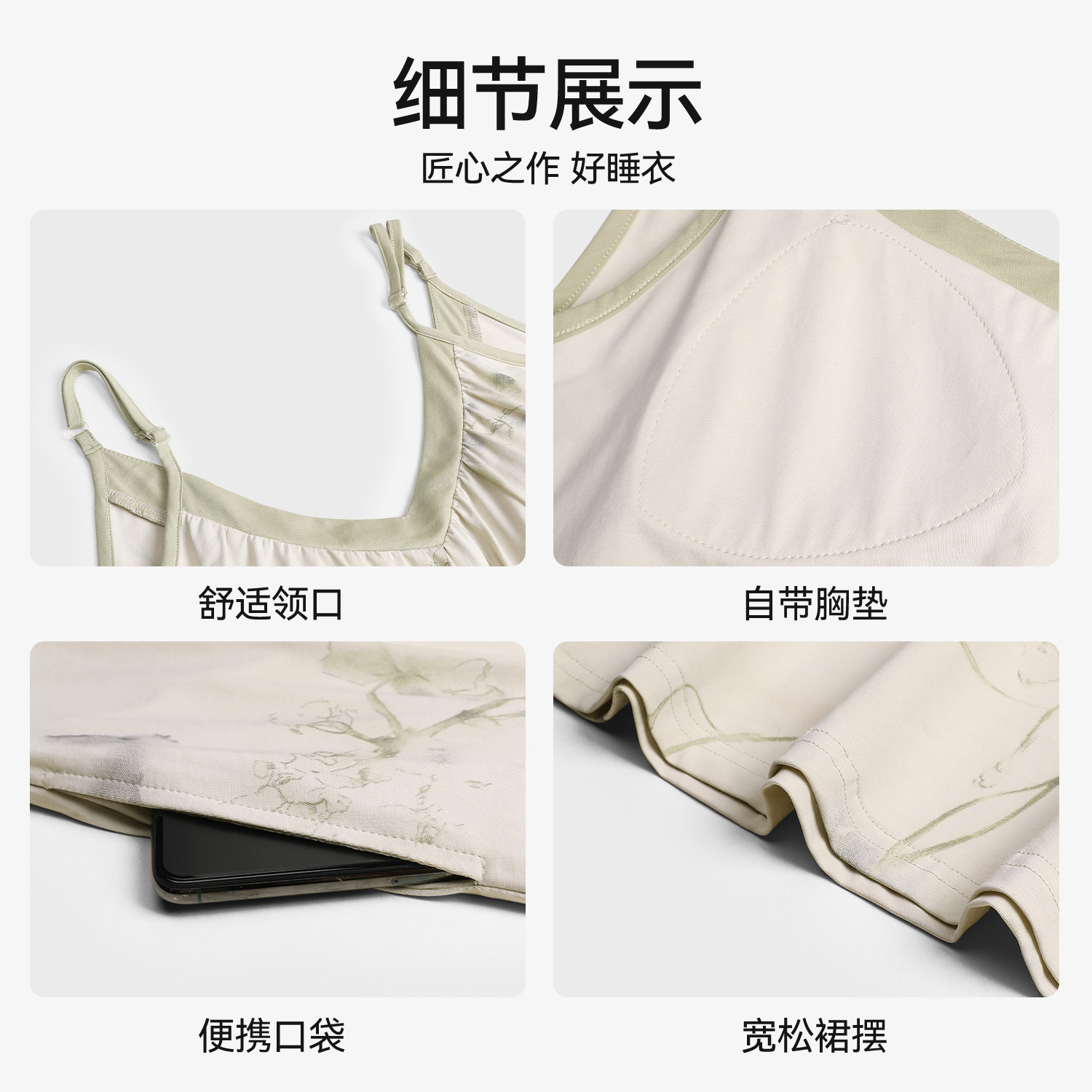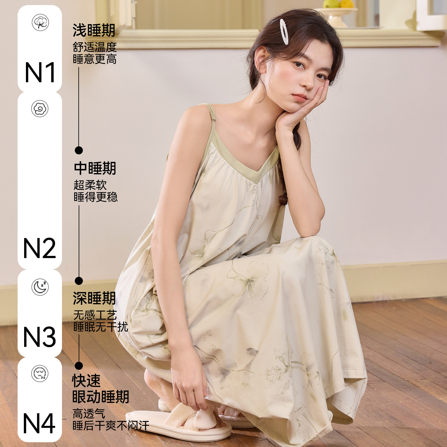 都市丽人纯棉带胸垫吊带睡裙女夏季薄款渐变色甜美款家居服可外穿