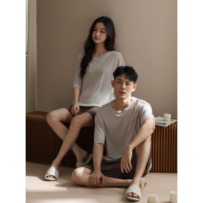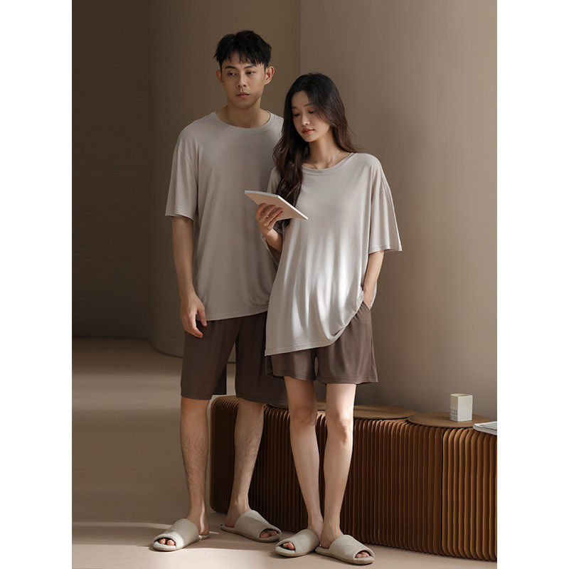 红豆【带胸垫】莫代尔情侣睡衣男女夏季薄款短袖宽松青少年家居服