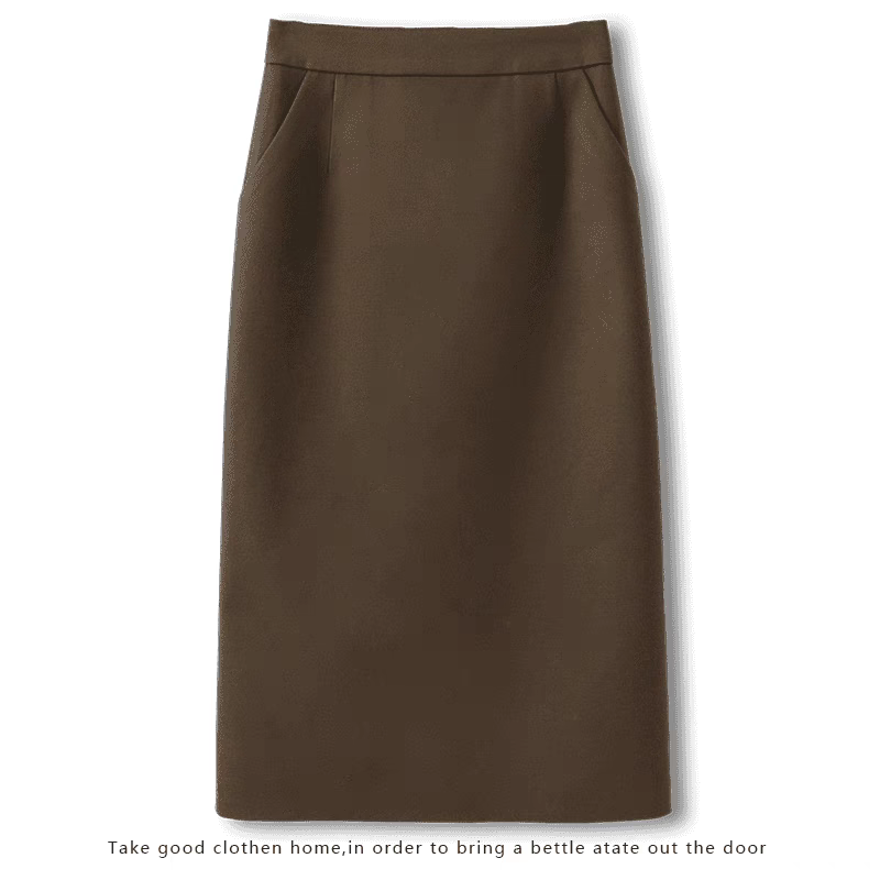 毛呢半身裙加绒包臀裙秋冬季时尚口袋高腰显瘦百搭一步中长款裙子
