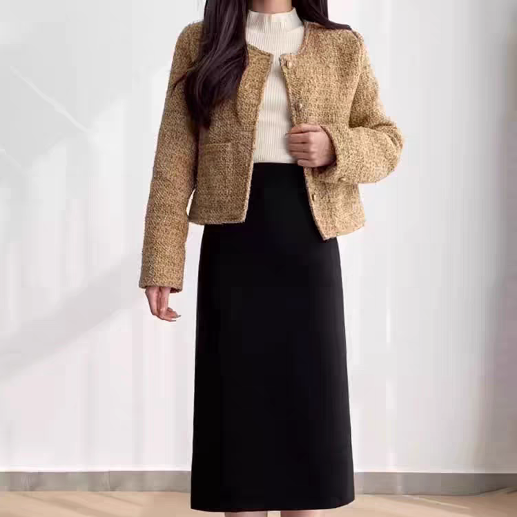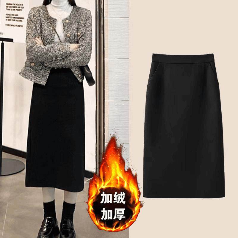 SIINSIIN直筒裙加绒2025年新款高腰收腹半身裙女黑色显瘦A字裙tk