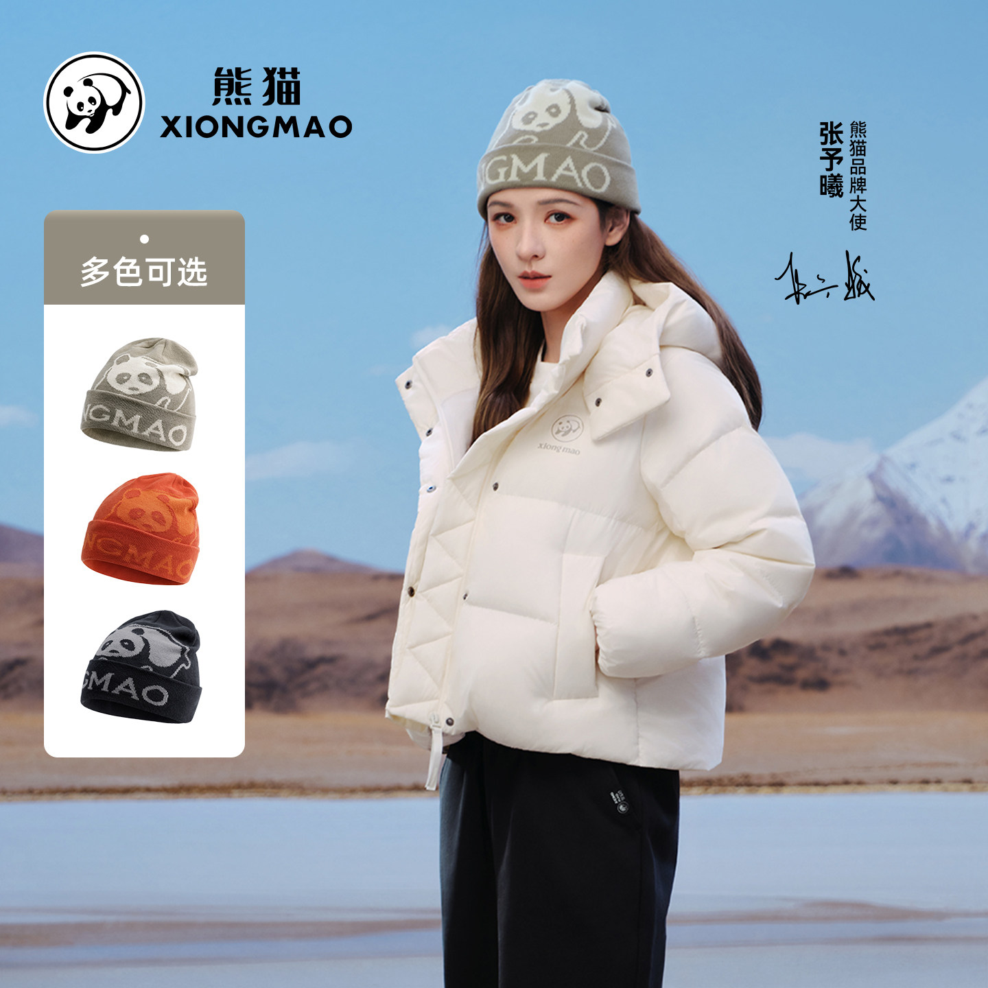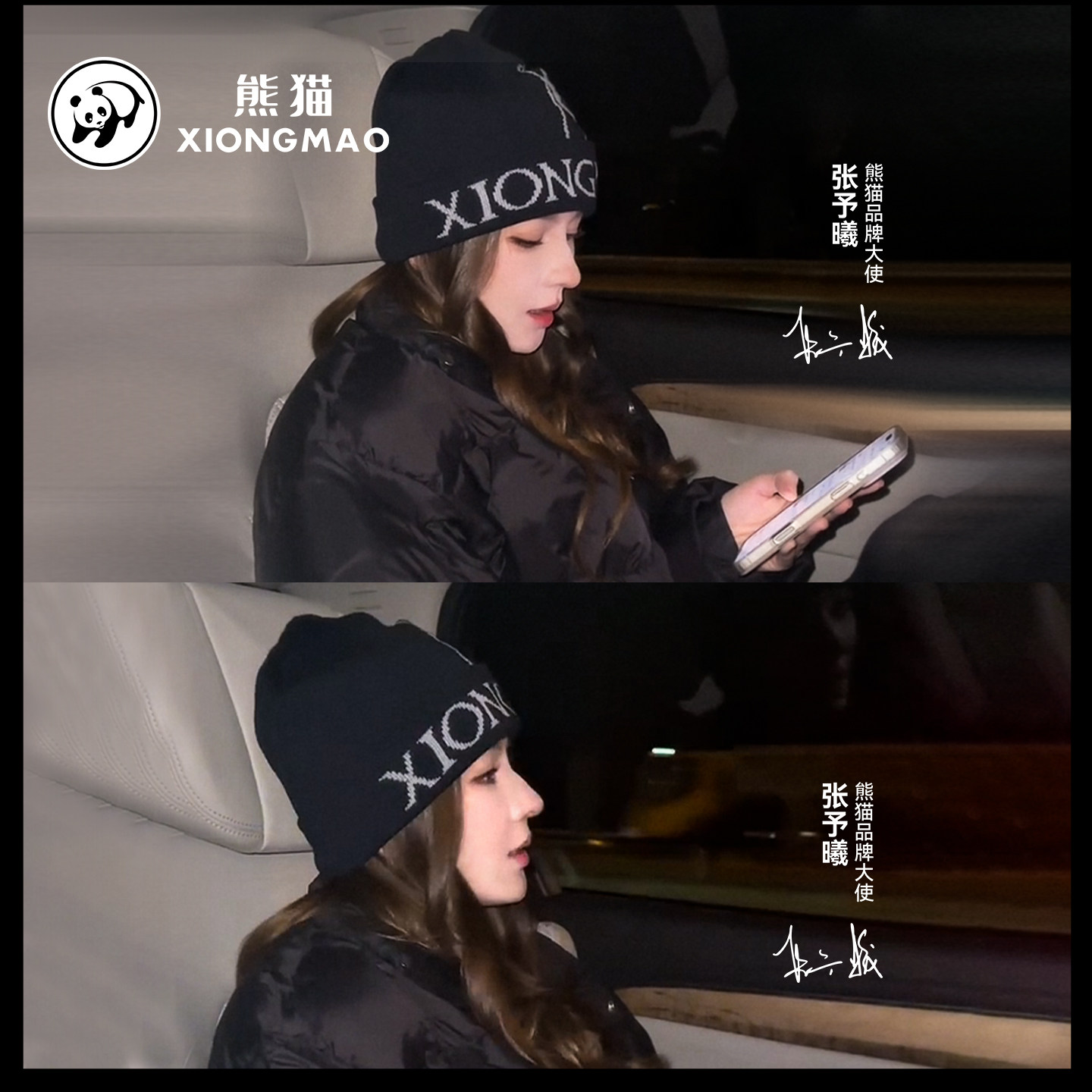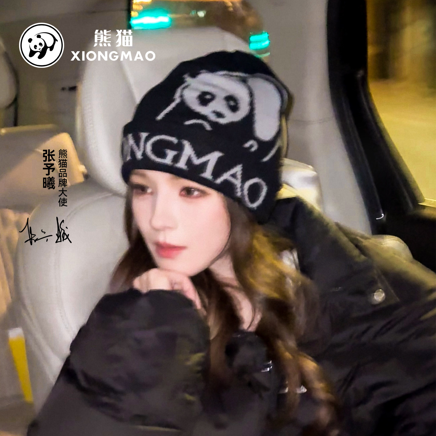 张予曦同款熊猫户外针织帽时尚百搭舒适高弹运动休闲帽子2025男女