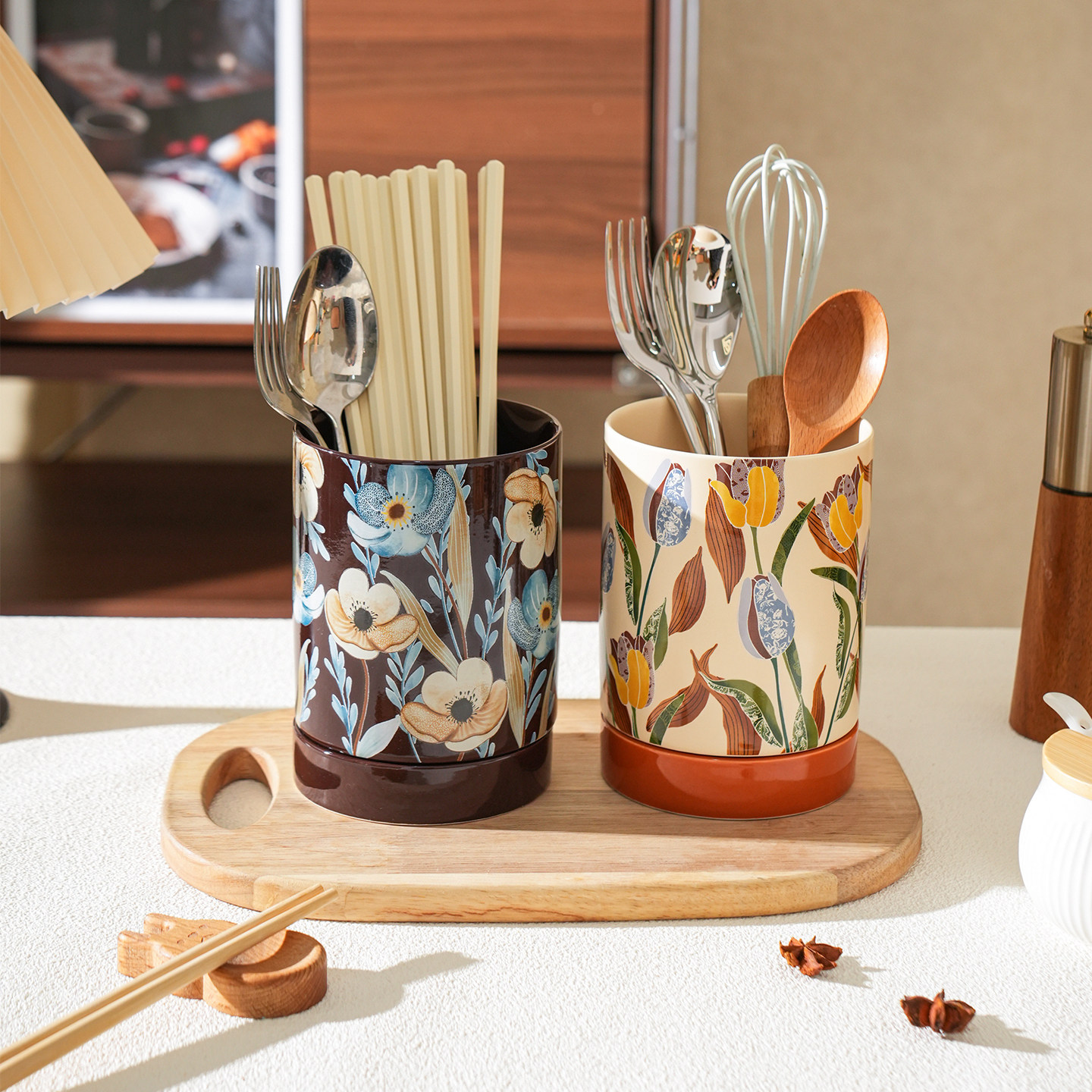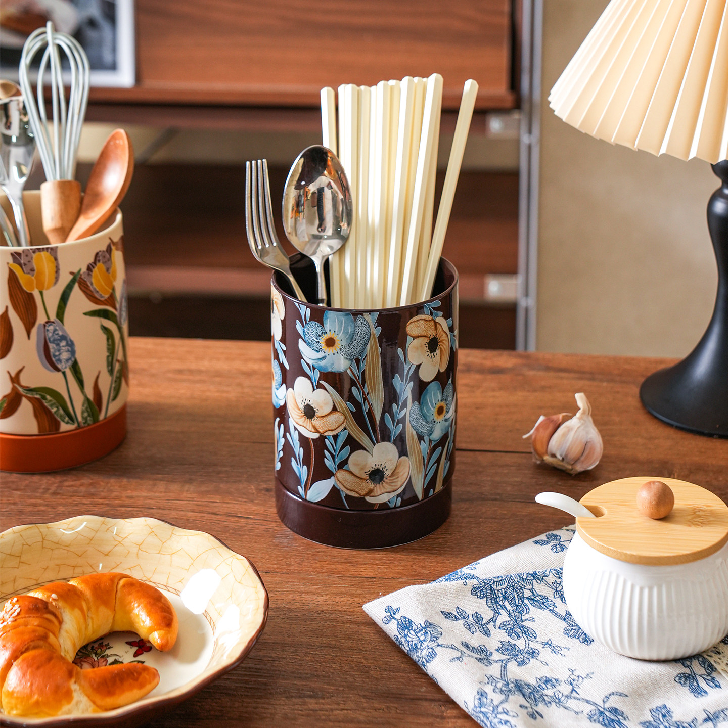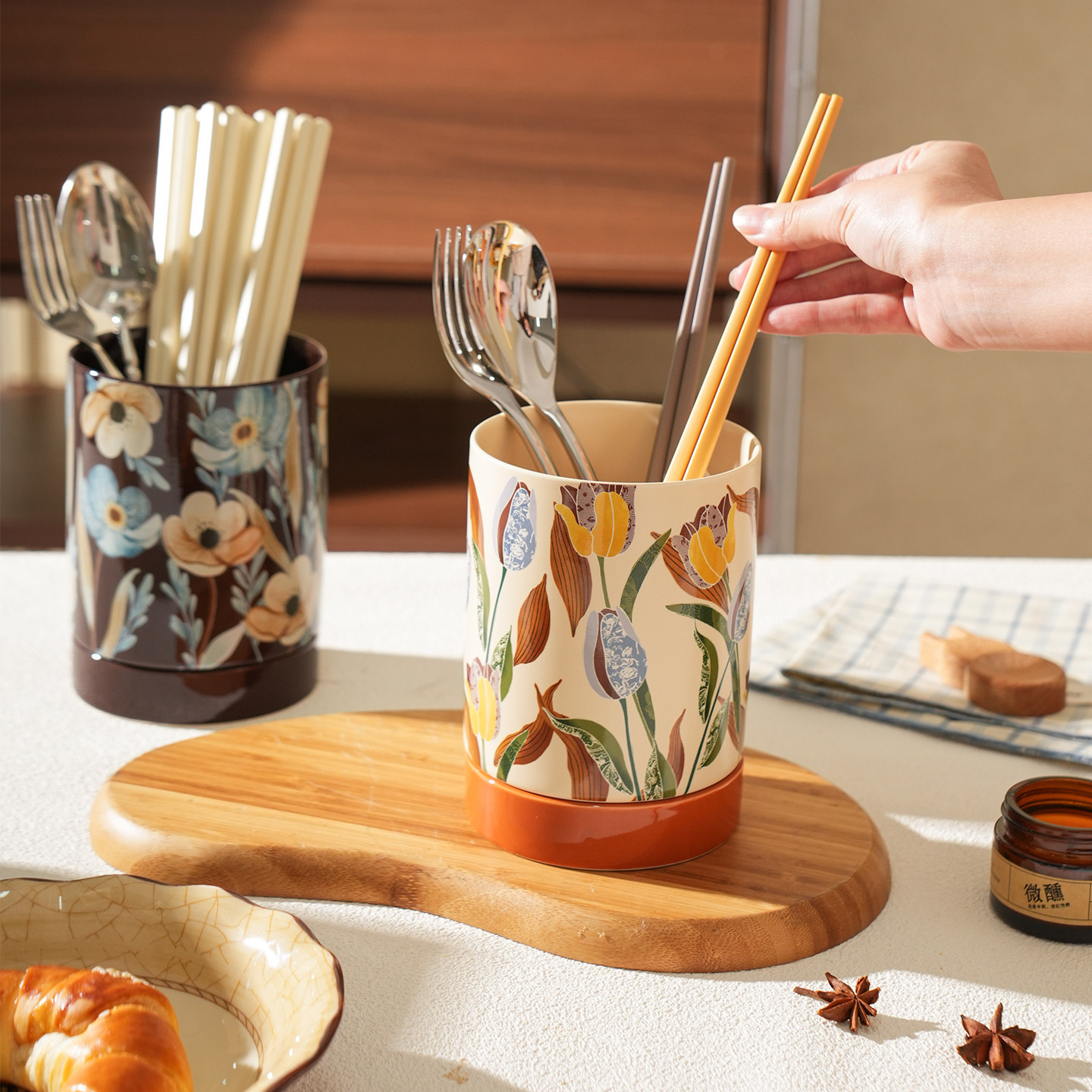 舍里复古陶瓷筷子收纳盒家用沥水防霉陶瓷筷子筒厨房筷子桶筷子笼