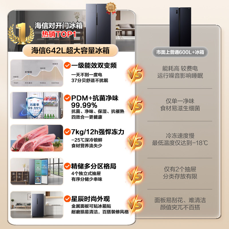 海信642L对开双开门冰箱大容量家用一级能效超薄风冷无霜换新补贴
