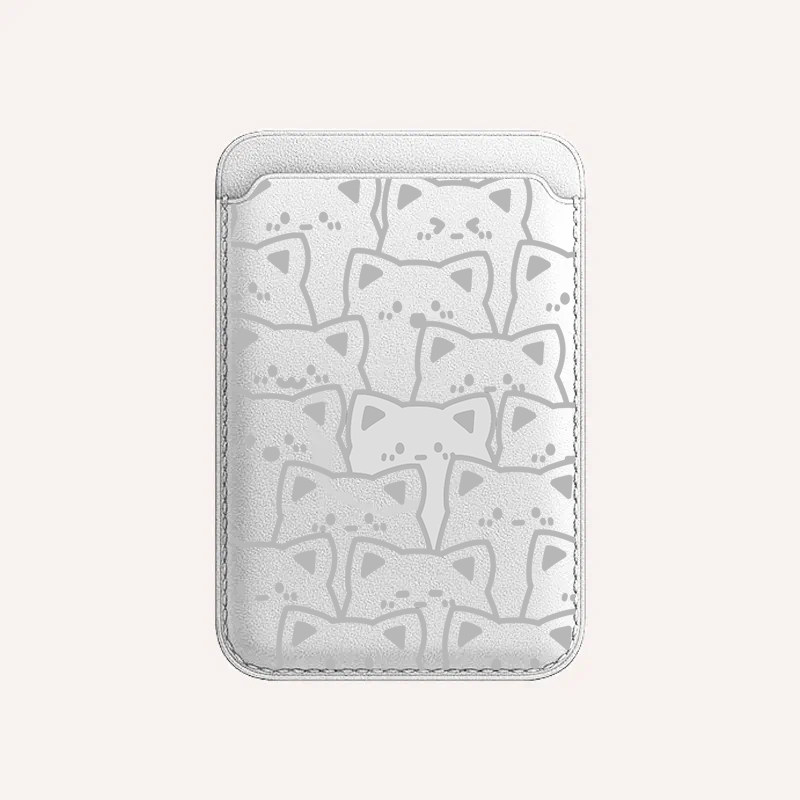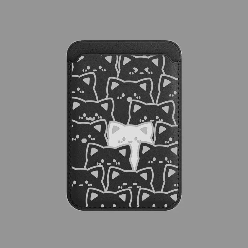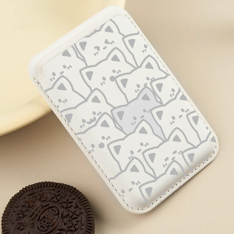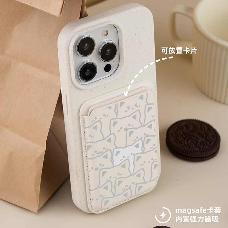 线条猫咪magsafe磁吸卡包适用苹果iphone15promax皮革14plus同款真皮卡套13mini小众手机壳皮质配件门禁卡套