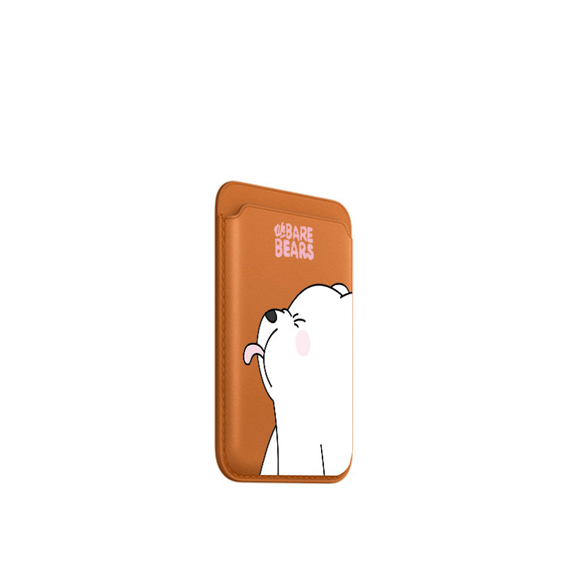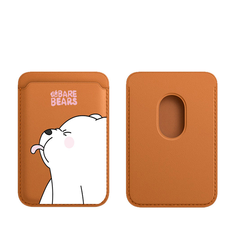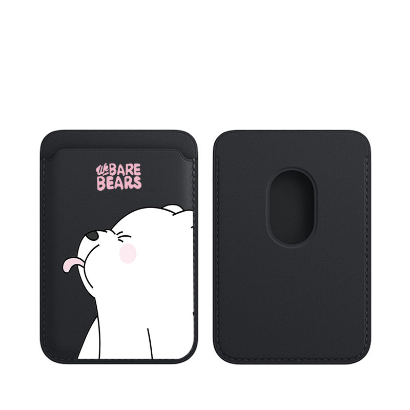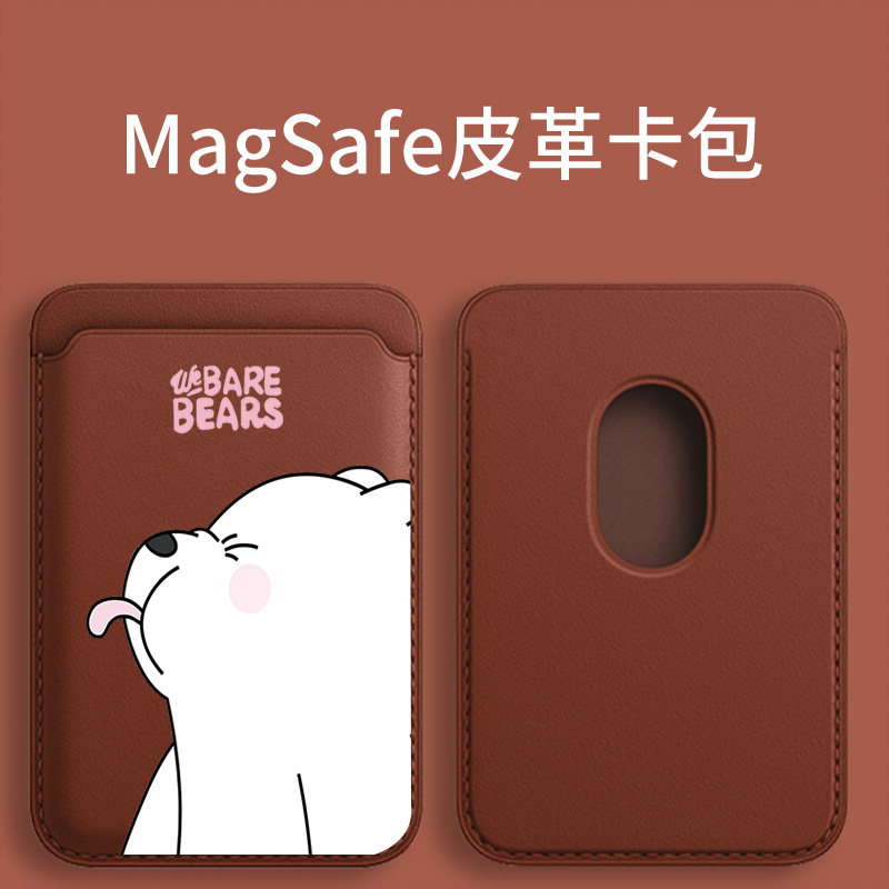 小白熊新款苹果magSafe磁吸卡包适用于iphone15pro皮革卡套式卡通14promax真皮质钱包mini配件插卡槽门禁卡套