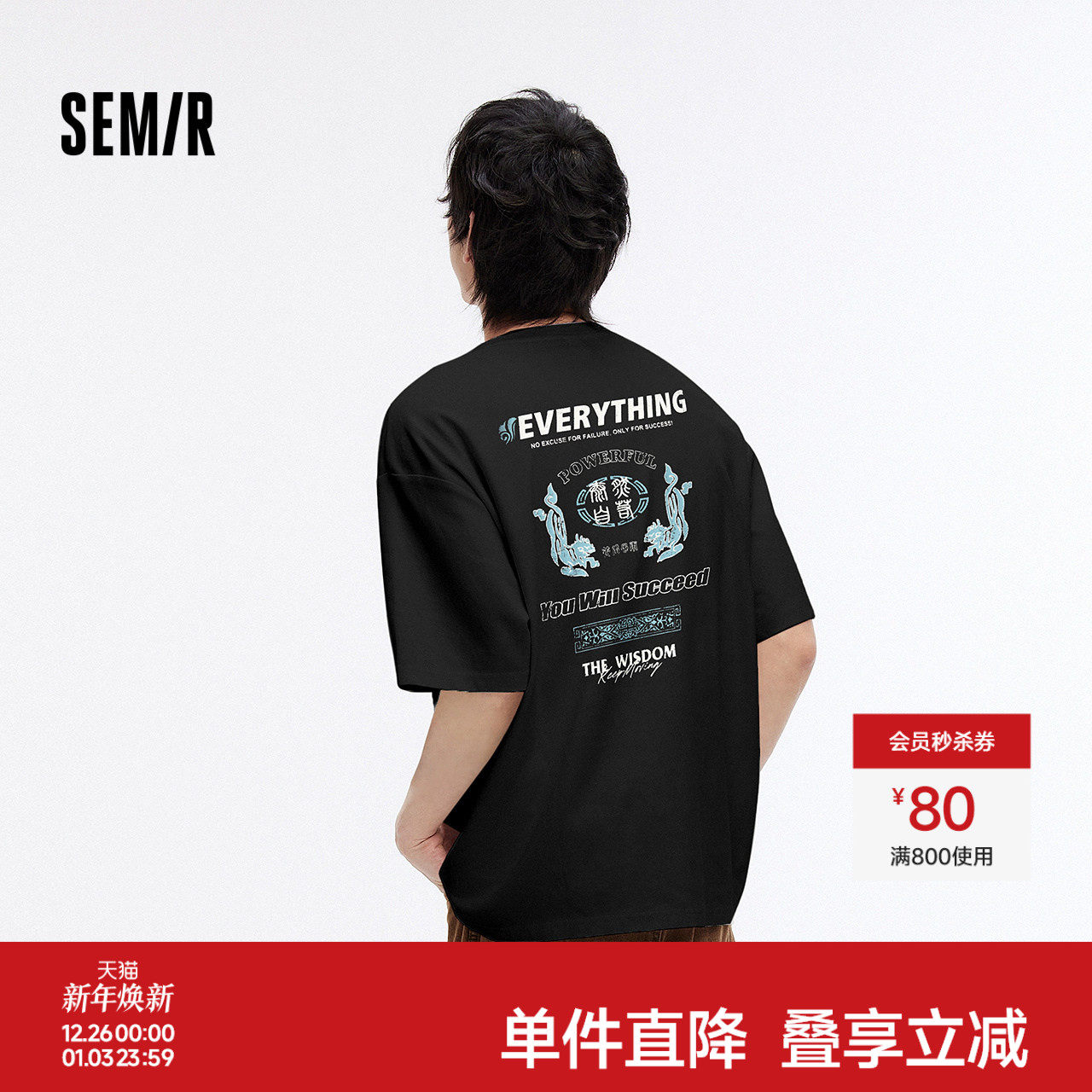 [商场同款]森马短袖T恤男国潮印花蜡染做旧复古夏装2025新款宽松
