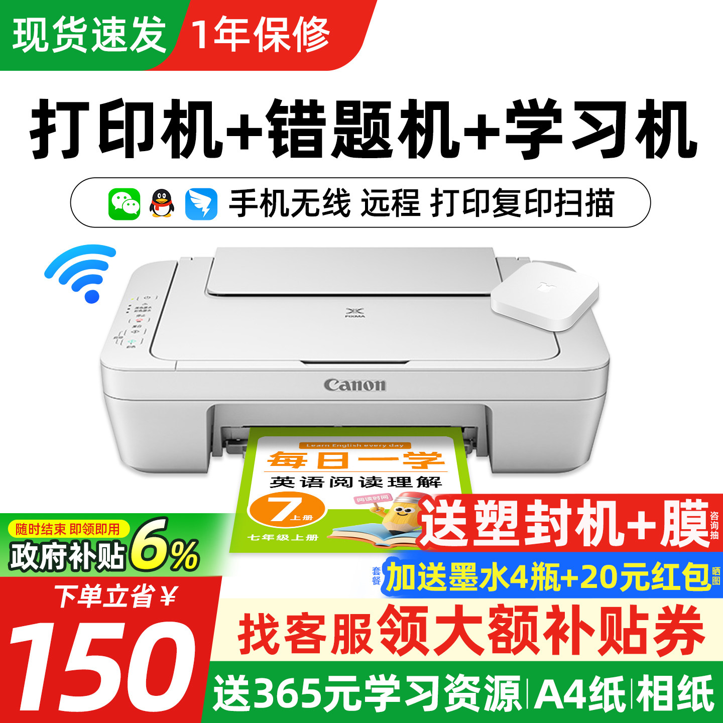 佳能MG2400家用打印机小型复印一体机无线家庭学生作业彩色喷墨可连接手机a4办公专用扫描蓝牙照片3480迷你