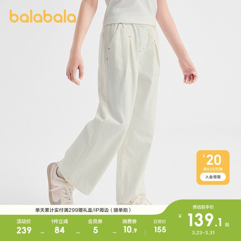 巴拉巴拉童装女童长裤儿童裤子2026休闲春装牛仔裤潮运动裤复古潮