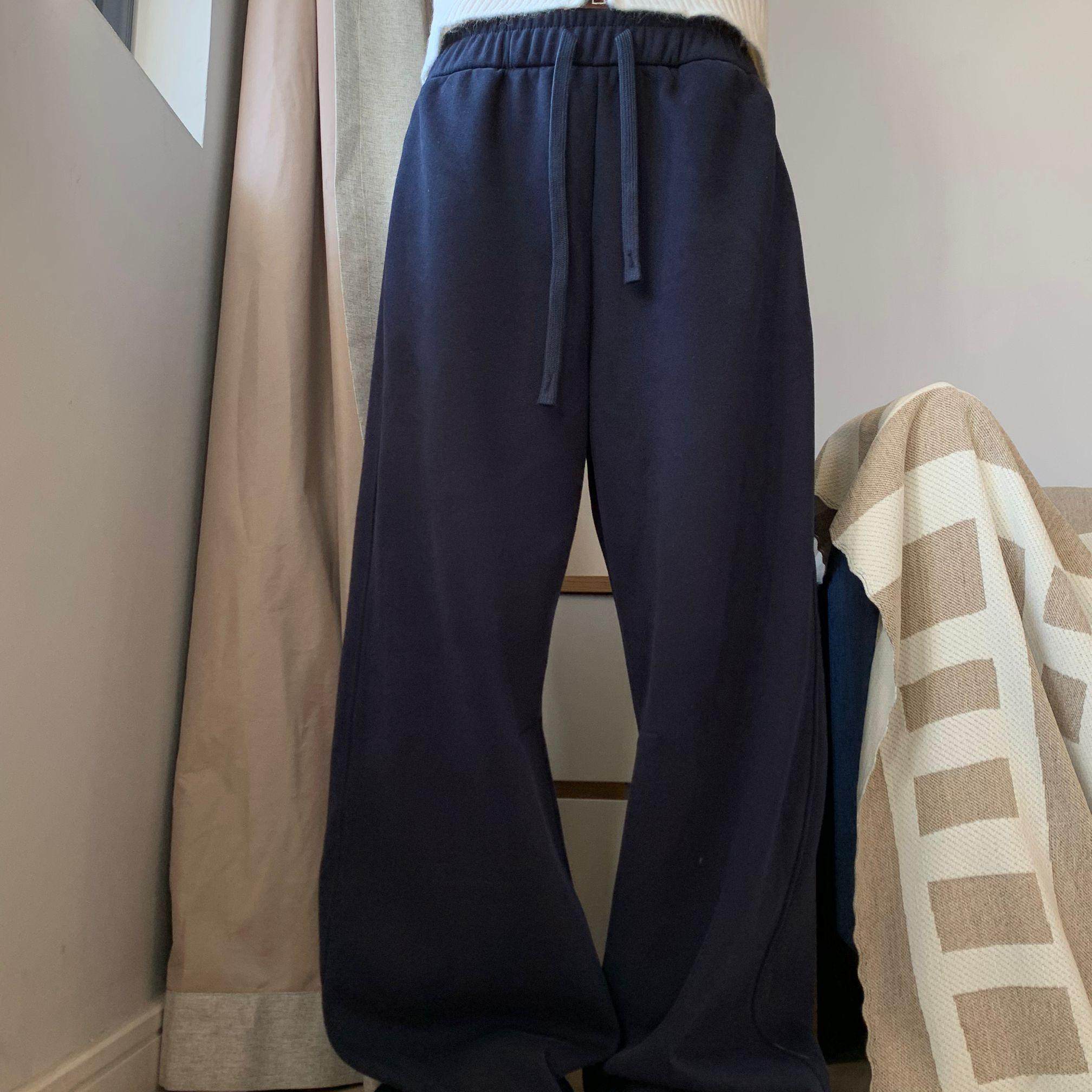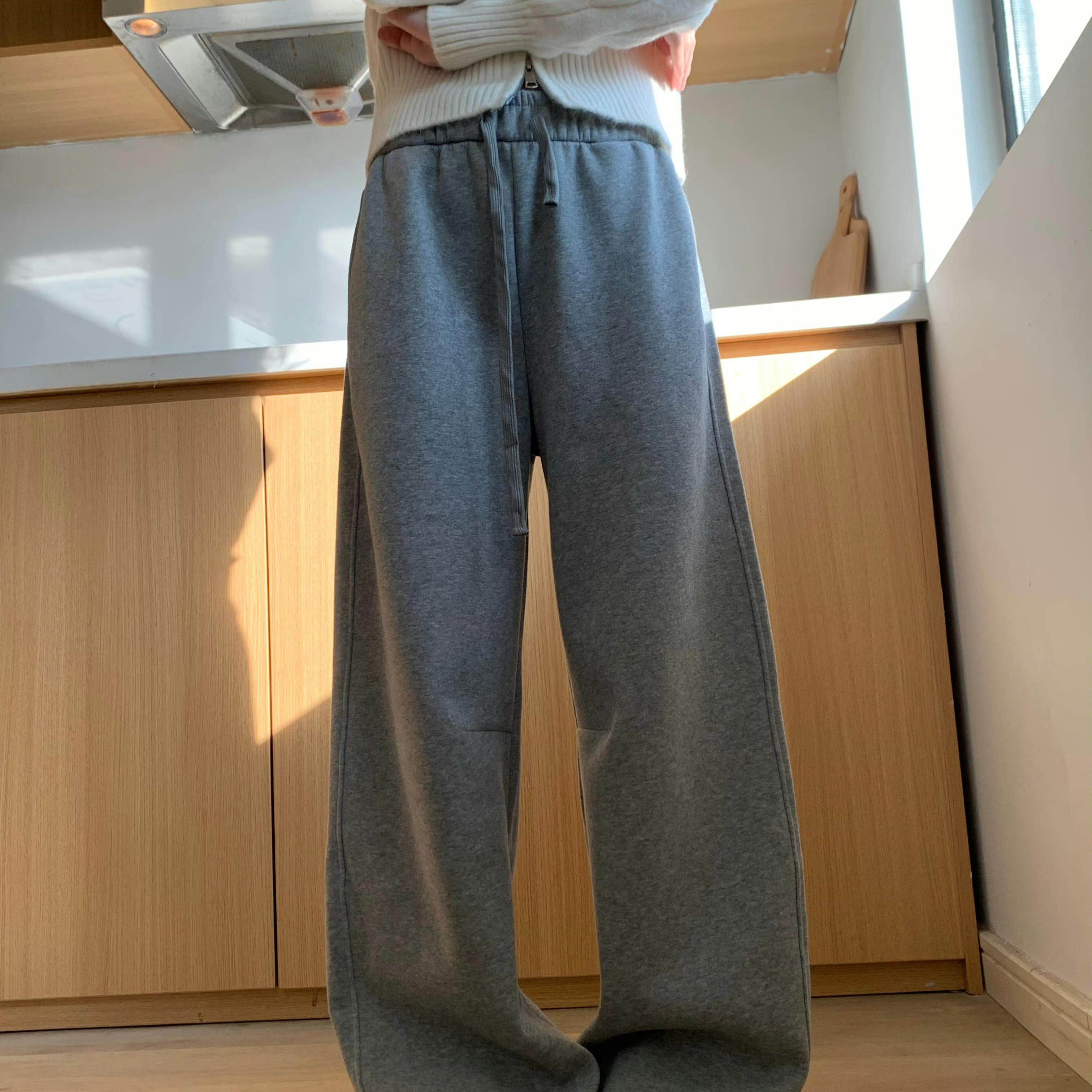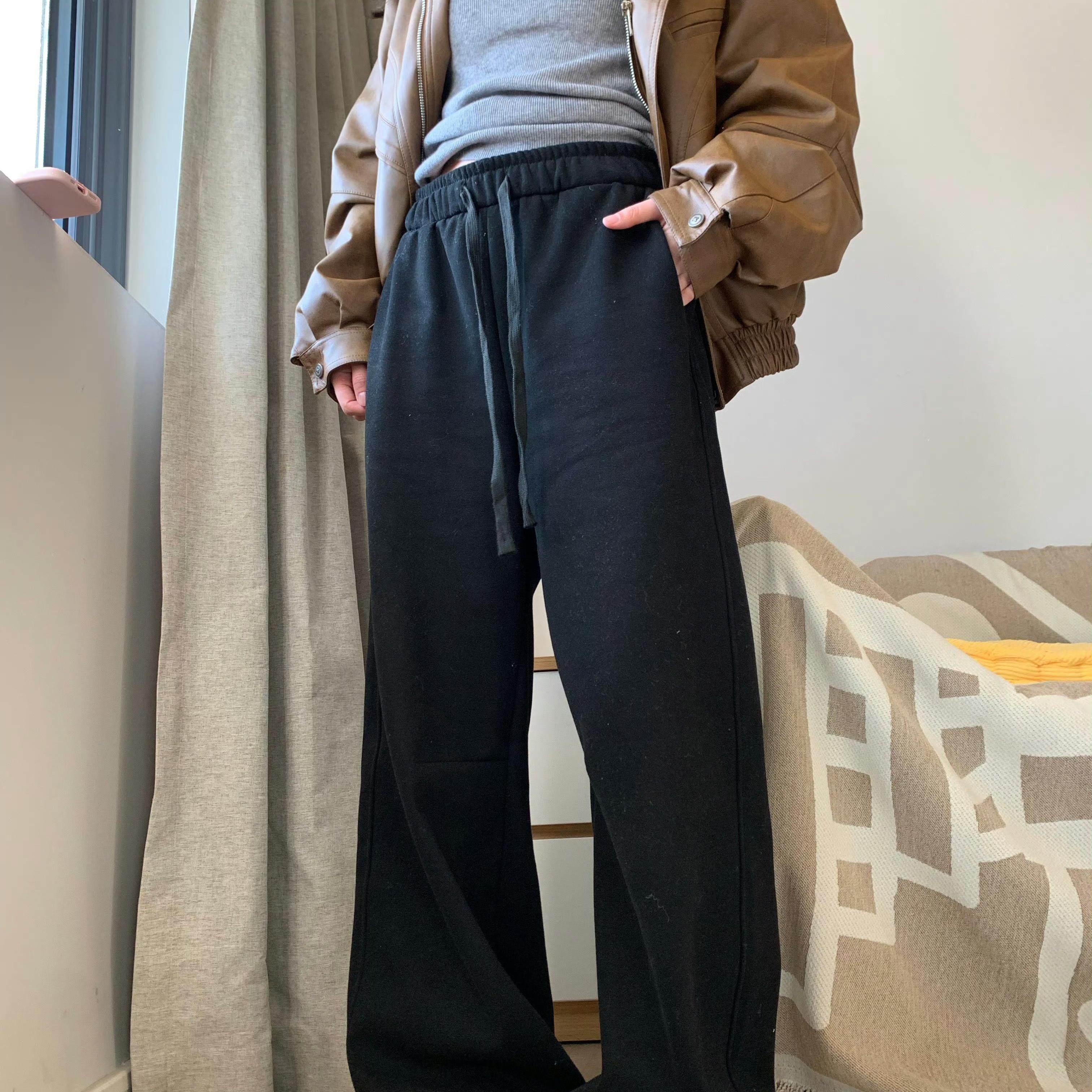 之塑美式松弛感休闲裤加绒加厚内衬防透宽松直筒阔腿莫代尔卫裤女