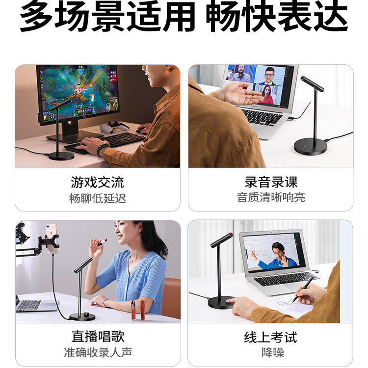 绿联麦克风电脑台式直播话筒降噪游戏会议K歌收录音usb外接电容麦