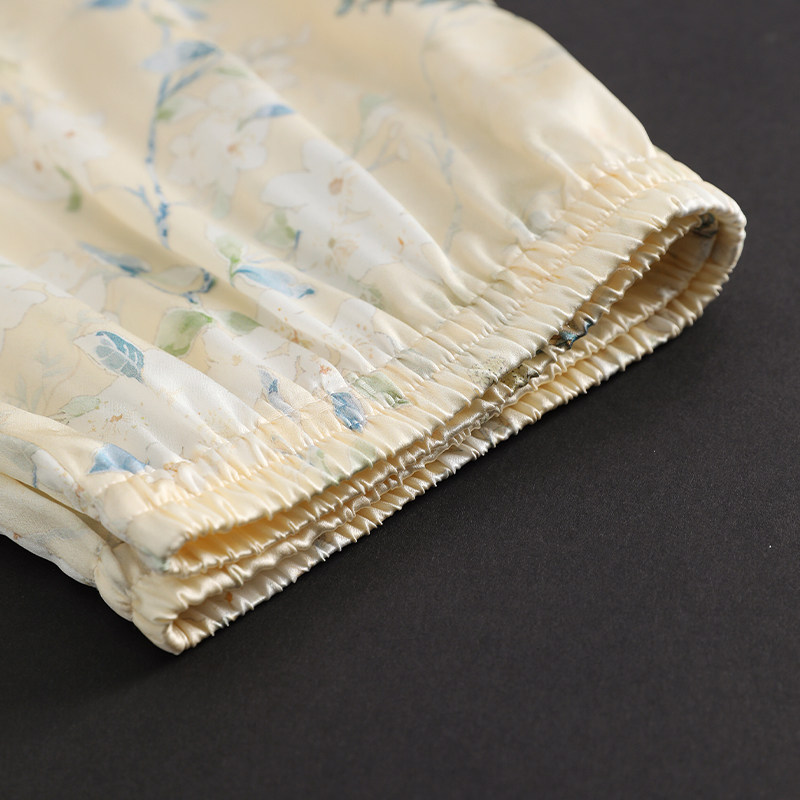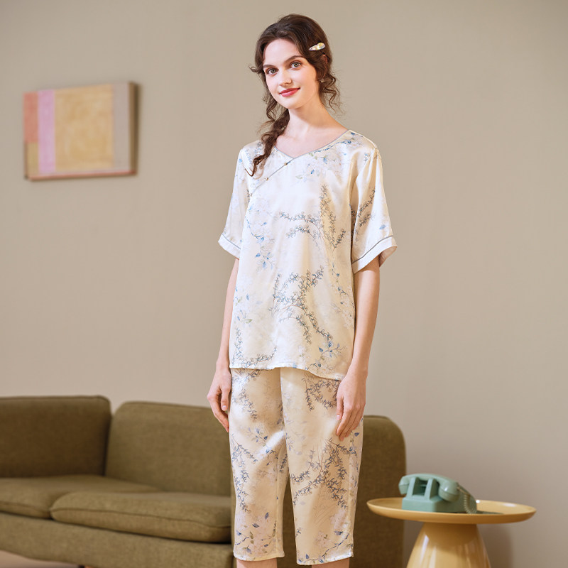 美标真丝短袖睡衣套装女夏新中式中国风喷绘重磅丝绸桑蚕丝家居服