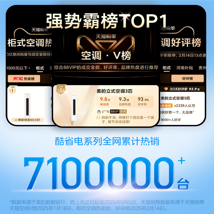 美的空调酷省电3匹2匹官方正品立式一级能效变频冷暖官网客厅柜机