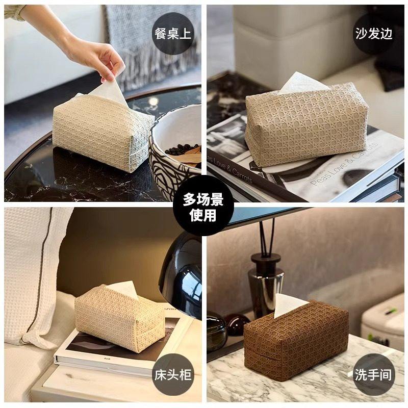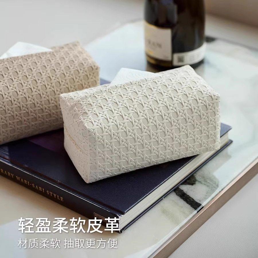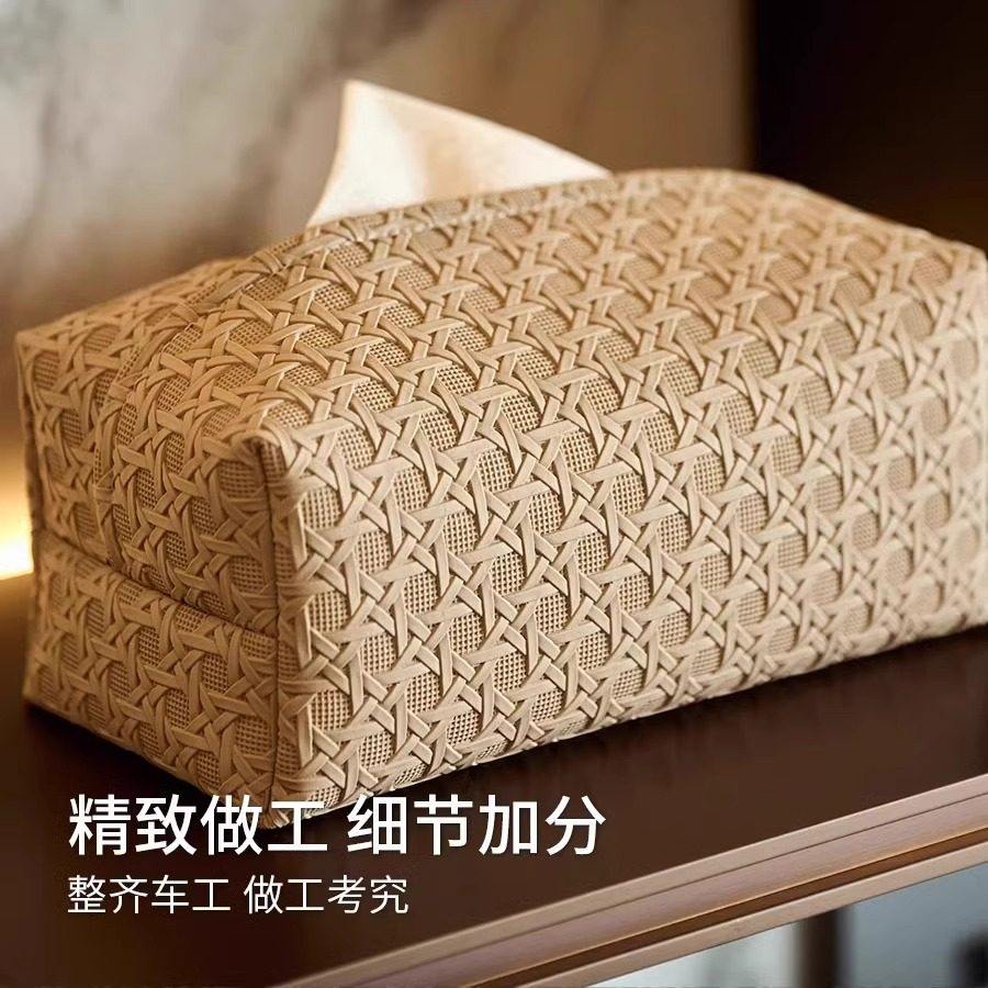 藤编纹纸巾盒轻奢皮革抽纸收纳盒客厅盒子高级感高档奶油餐桌床头