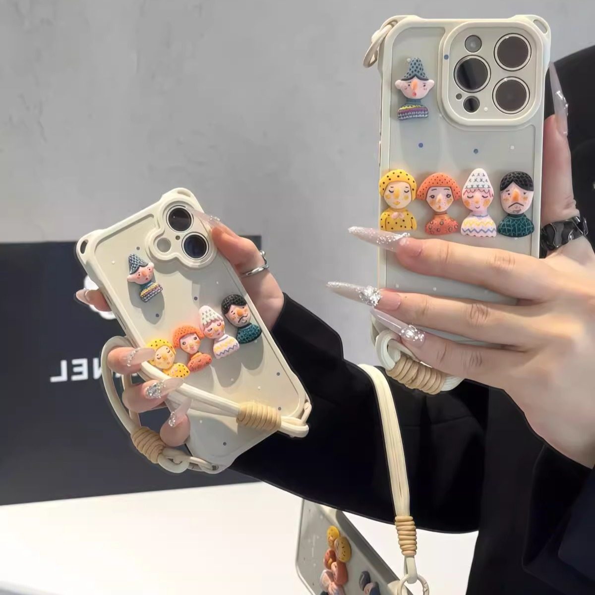 波点小人偶适用苹果16手机壳iPhone15promax新款13女12华为p70荣耀300挂绳vivox200四角防摔oppo小米14红米11