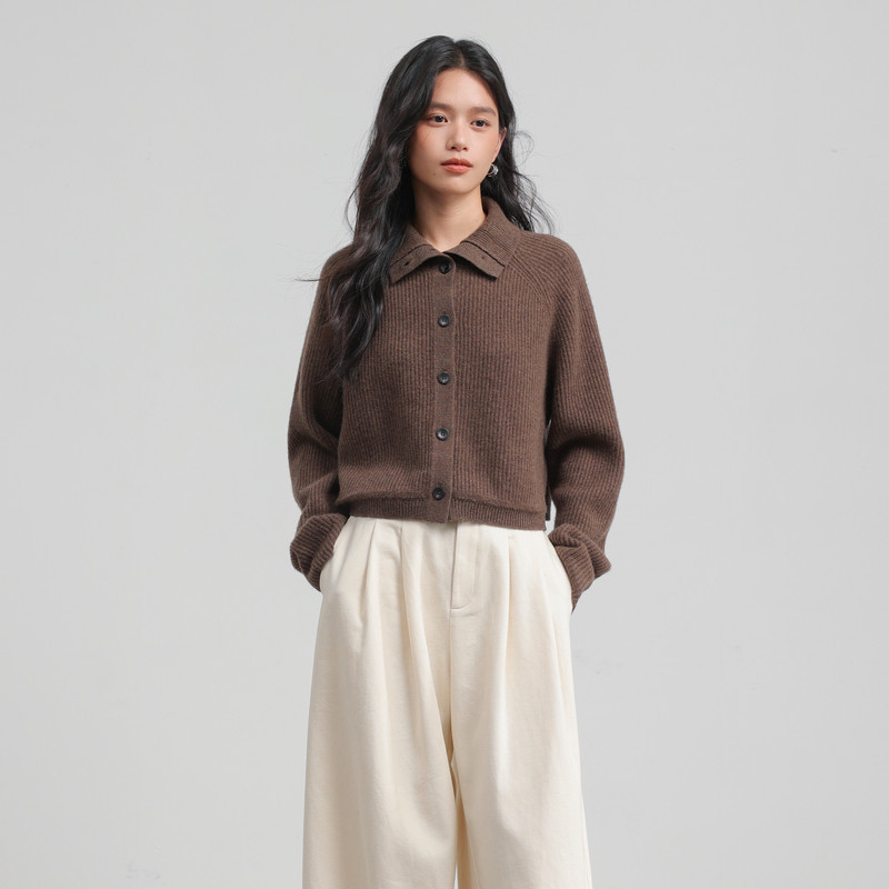 鄂尔多斯市断码羊绒开衫女春秋新款宽松毛衣外套翻领针织羊毛衫