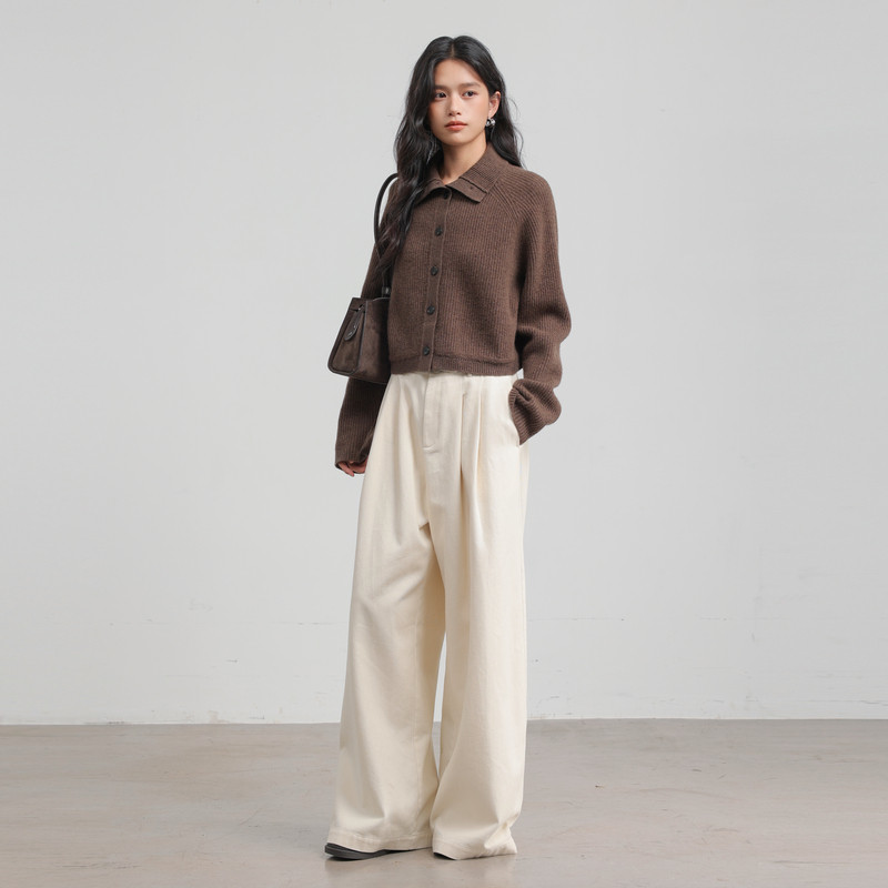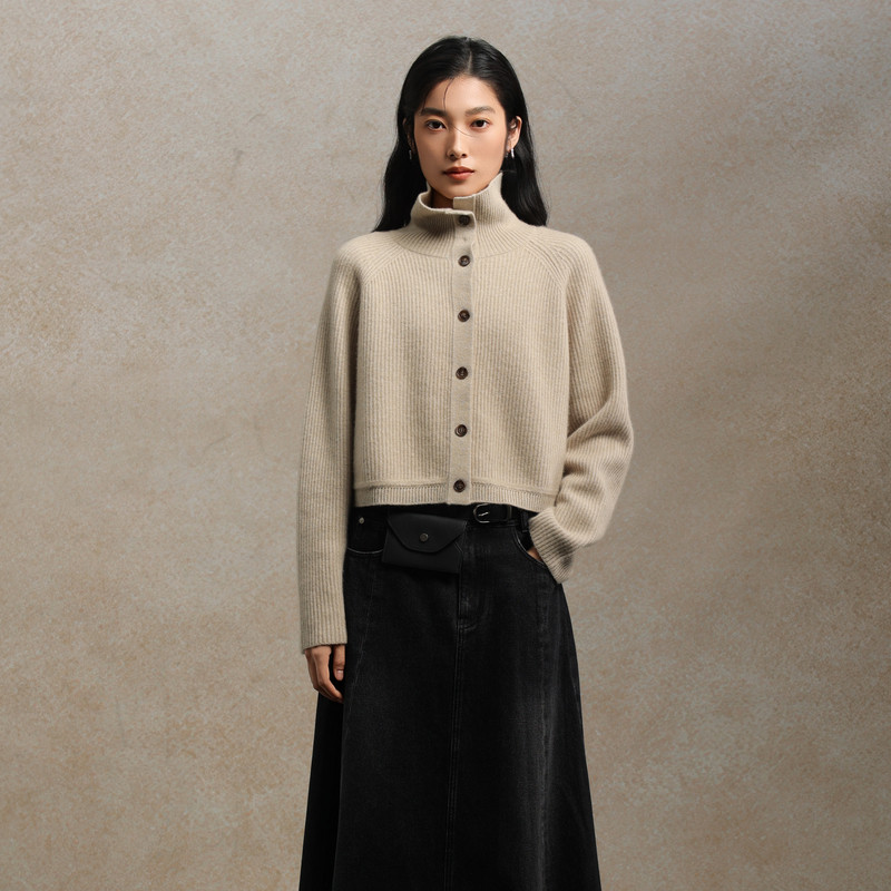 AIRIQI商场同款25冬新款简约温暖羊毛舒适立领针织开衫AX54KS285