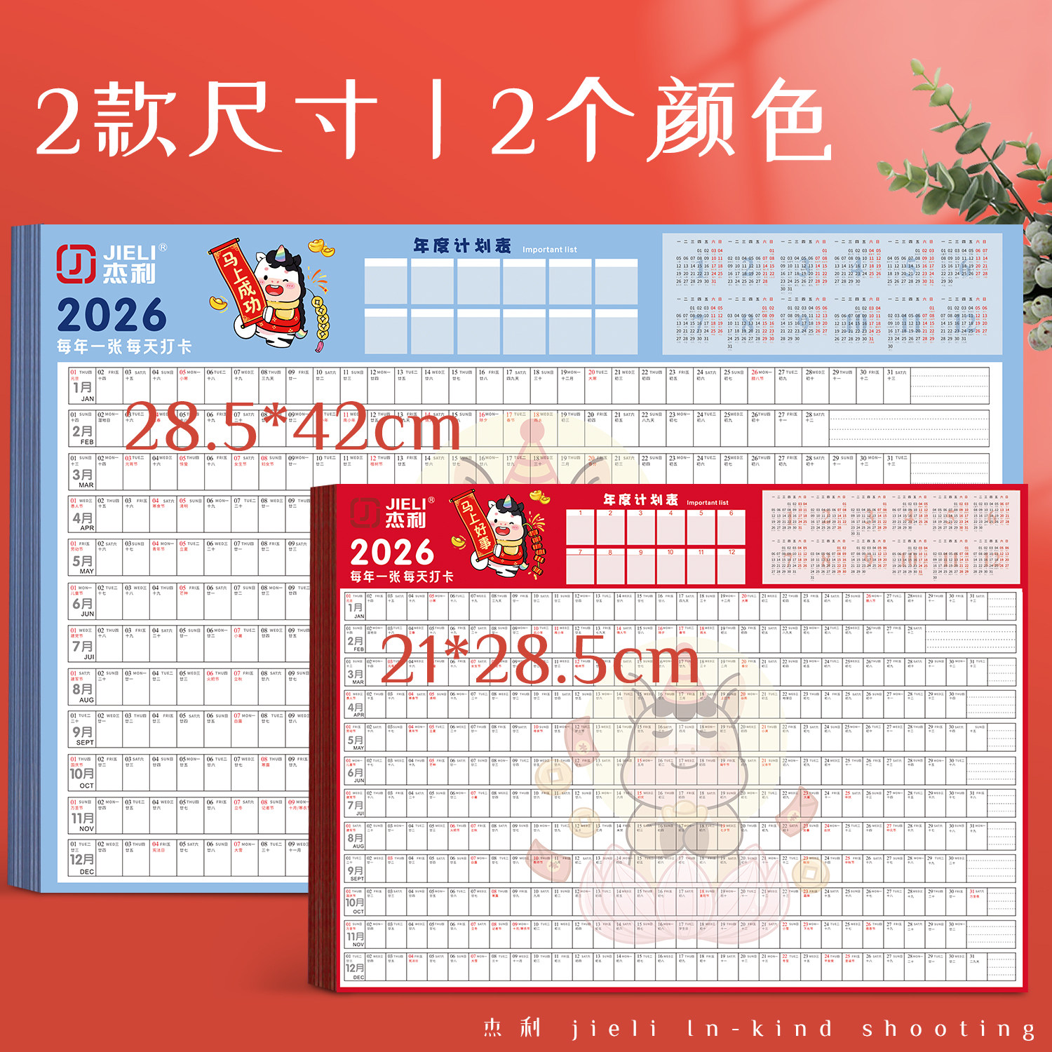杰利2026年日历台历纸年历单页单张马年日程年历表计划表桌面年历纸365天全年计事表年计划创意简约批发定制