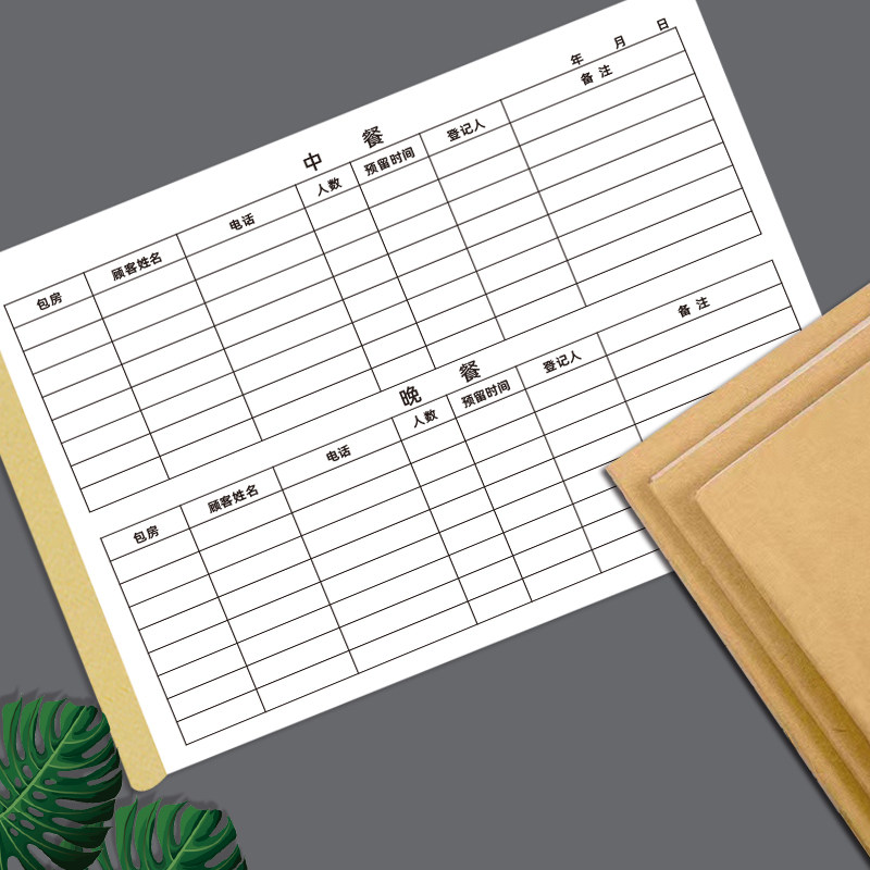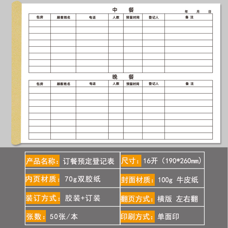 订餐预定登记表餐饮酒店酒楼订购中餐晚餐登记簿餐饮酒席定位订桌本酒店包厢订位本餐厅预约订餐本记账本定制