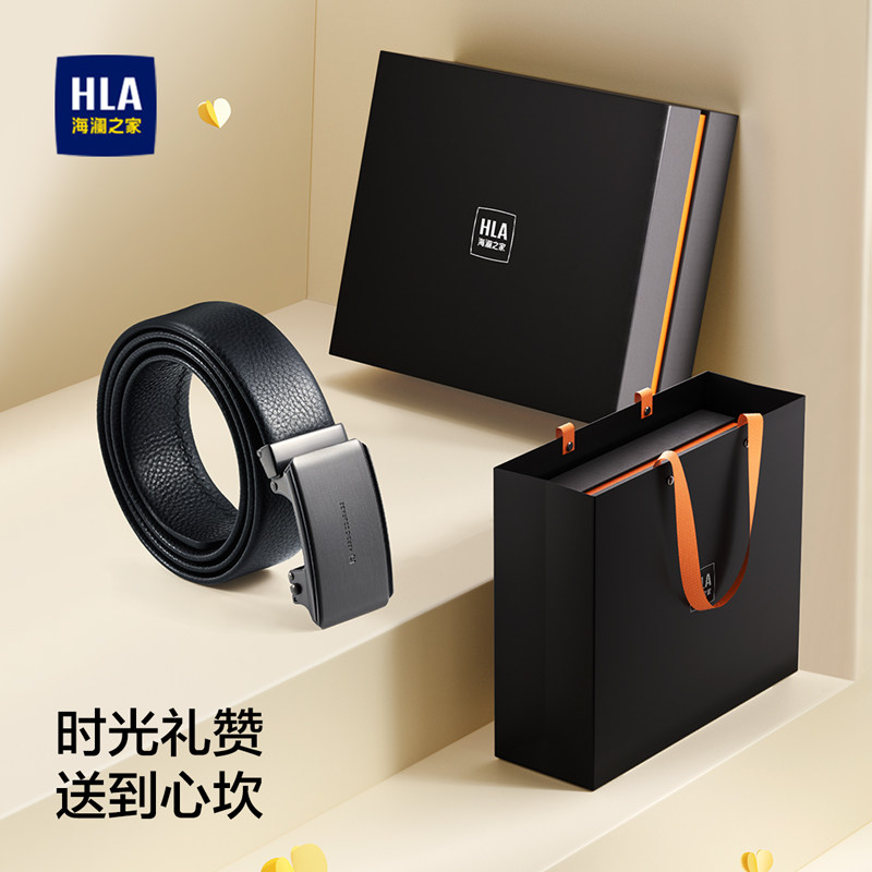 海澜之家男士真皮皮带头层牛皮送爸爸男友生日礼物实用礼盒装腰带