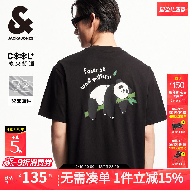 【凉感】杰克琼斯男装2025年秋季新宽松熊猫肌理印花男士短袖T恤