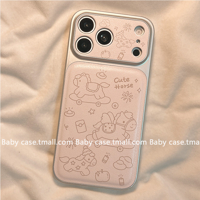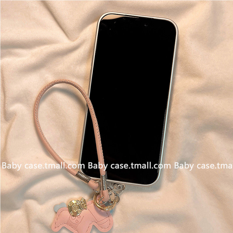 北比少女粉色涂鸦线条小马适用苹果17pro手机壳iphone16promax新款15皮质挂绳17卡通14pm甜美15pro简约16全包