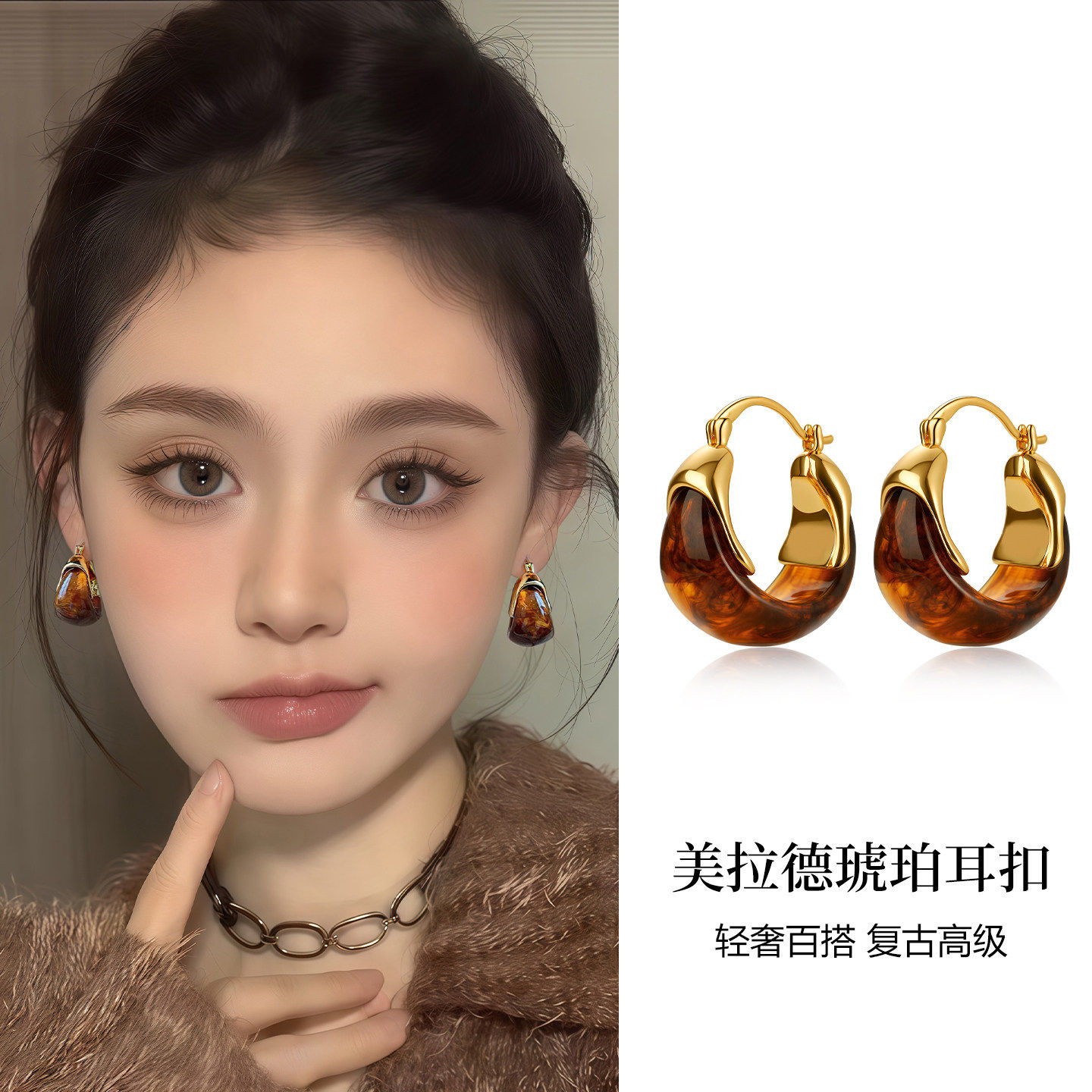 法式圈圈耳环2024新款爆款耳钉小众设计素圈耳圈耳扣女高级感耳饰
